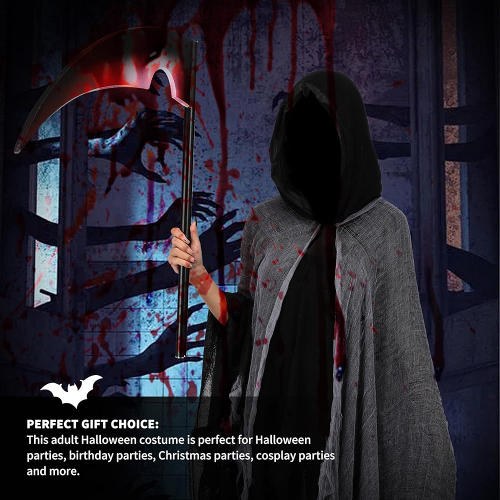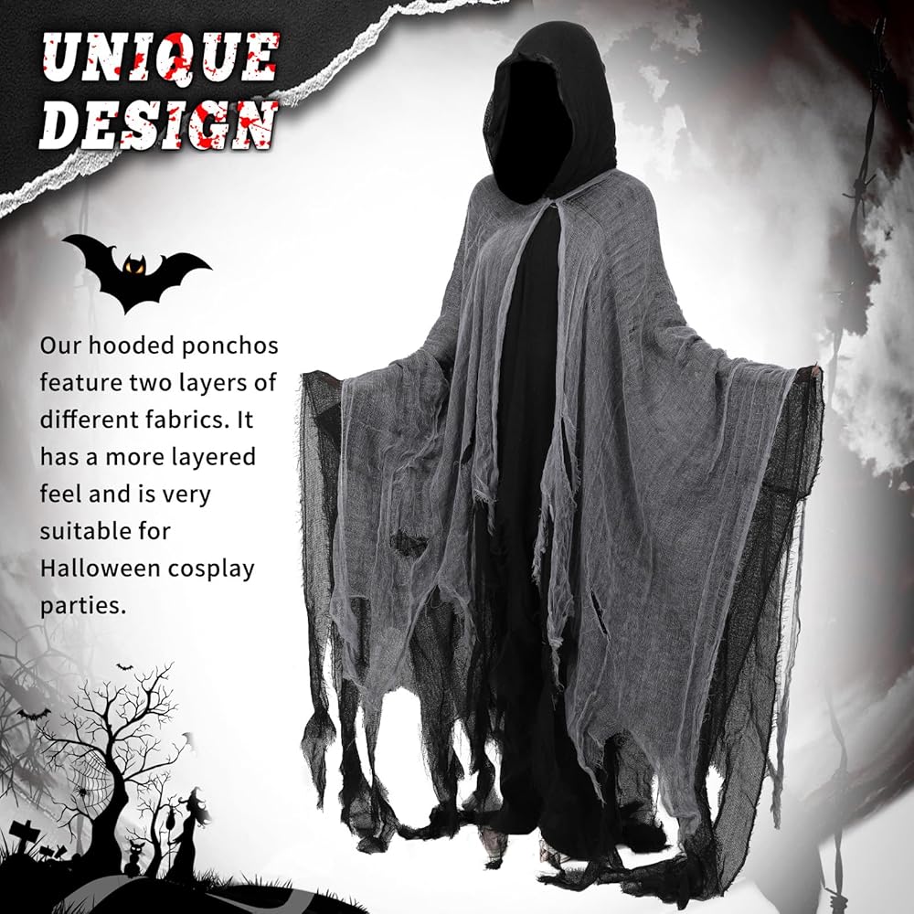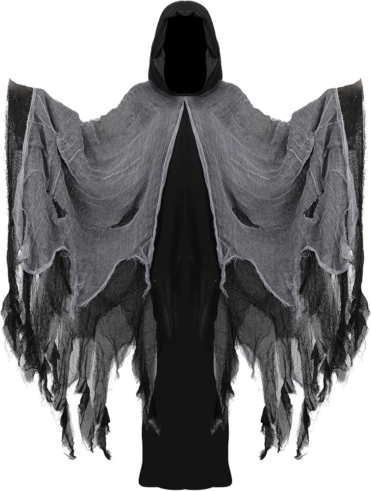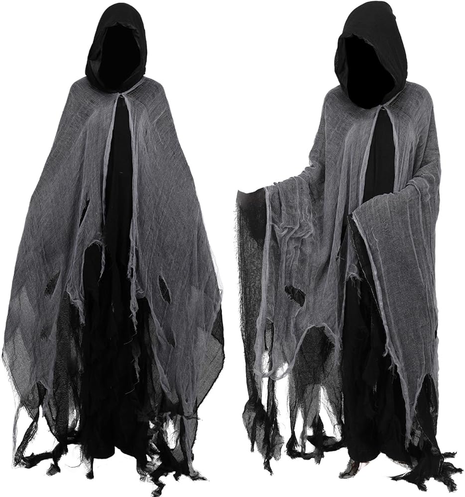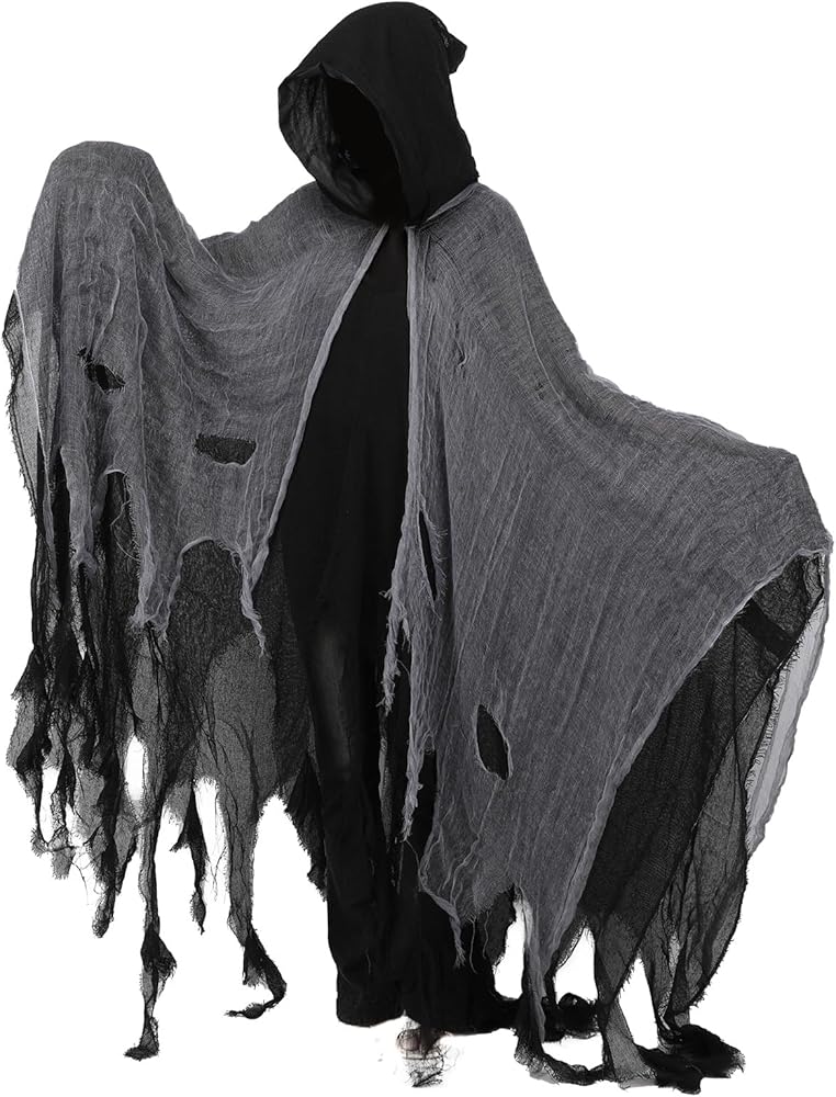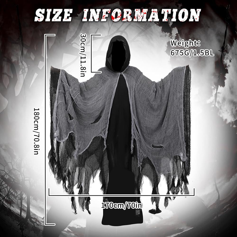 Tattered Cloak with Hood: Our ghost cloak with hood is designed with fabric and hole mesh, tattered style delivers a sense of horror and scary. Death hooded cloak adds a ghost touch to your Halloween costume cosplay