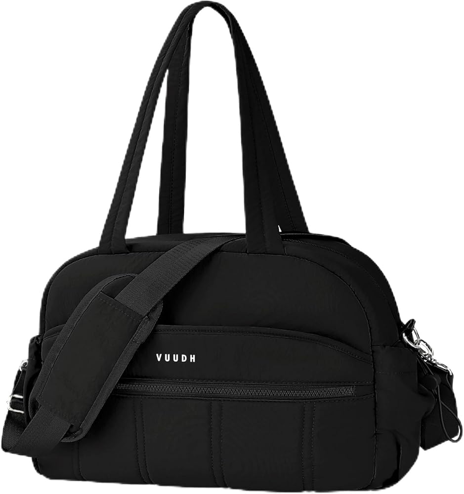 VUUDH 20L Lightweight Soft Duffel Bag - The Perfect Gym & Travel Companion Introducing our premium puffy quilted duffel bag, designed for effortless style and ultimate functionality. Key Features: ✔ 20L Spacious Design (11.5"x16"x7") – Perfectly sized for gym essentials, weekend trips, or daily commutes. ✔ Quick-Grab Pocket – Front zipper pocket keeps your phone, wallet, and keys secure yet easily accessible. ✔ 15.6" Laptop Sleeve + Wet Pocket – Safely store your laptop and keep sweaty clothes/toiletries separate. ✔ Adjustable Shoulder Strap (Max 49.6") – Switch between dual handles or the extendable strap for versatile carrying. ✔ Includes 6"x8" Coin Purse – Perfect for organizing small items like keys or cards. Why You'll Love It: Cloud-Soft Quilted Fabric – Lightweight (1.2lbs) yet durable for daily use. Multiple Storage Options – Front pocket, side pockets, and main compartment keep everything organized. Travel-Ready – Compact size fits under airplane seats, while the water-resistant lining protects your belongings. Ideal for: Gym workouts, business trips, weekend getaways, or as an everyday tote. Note: All features shown in product images are accurately represented. The bag is machine-washable for easy care. Get yours today and experience the perfect blend of style and practicality!