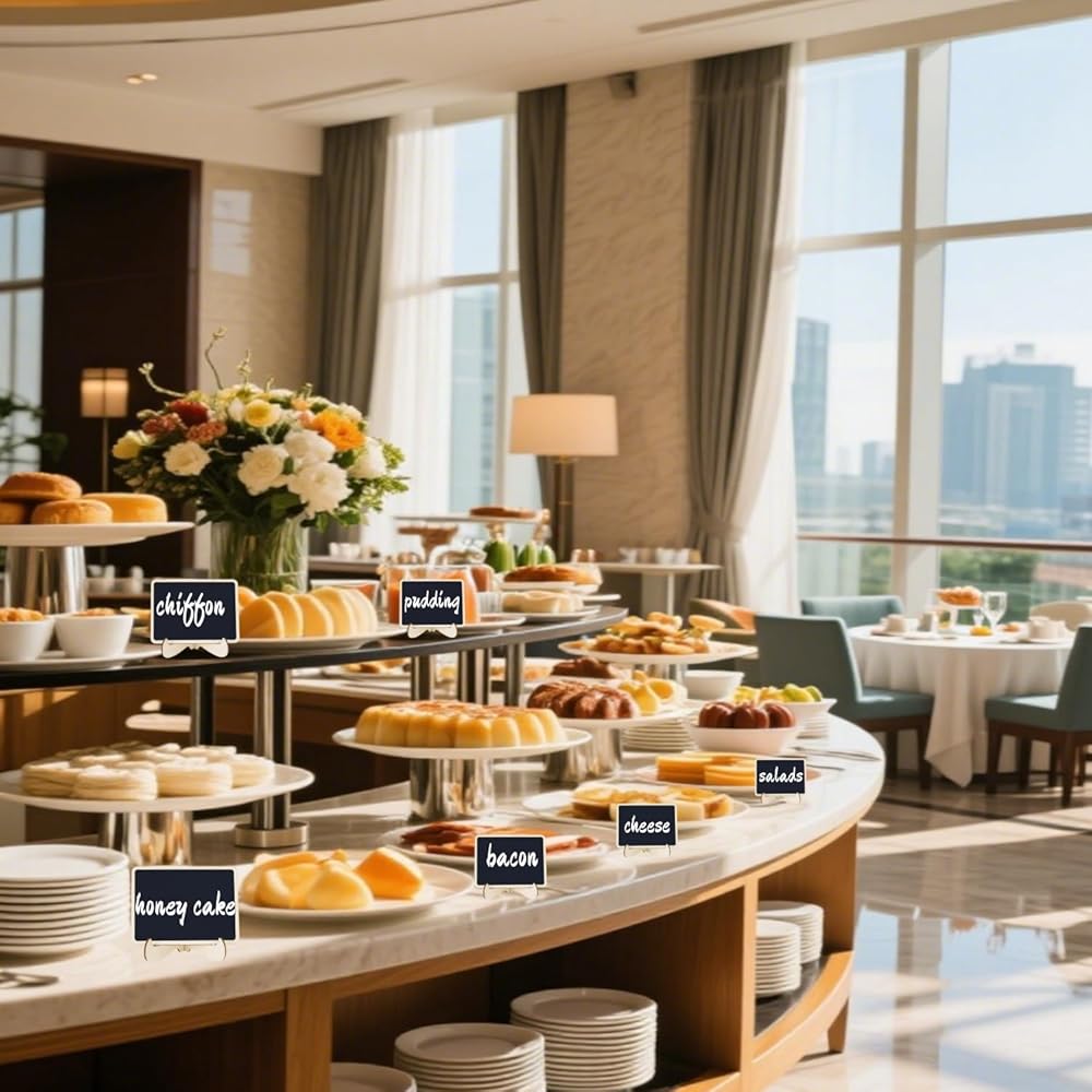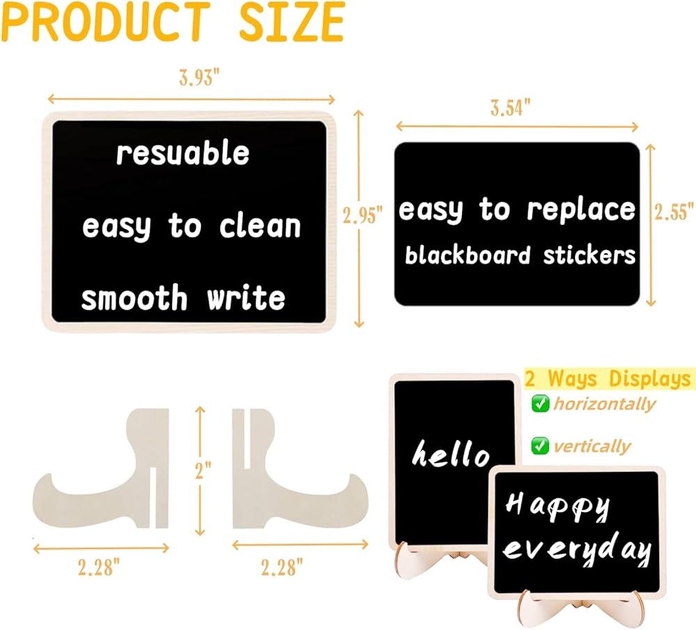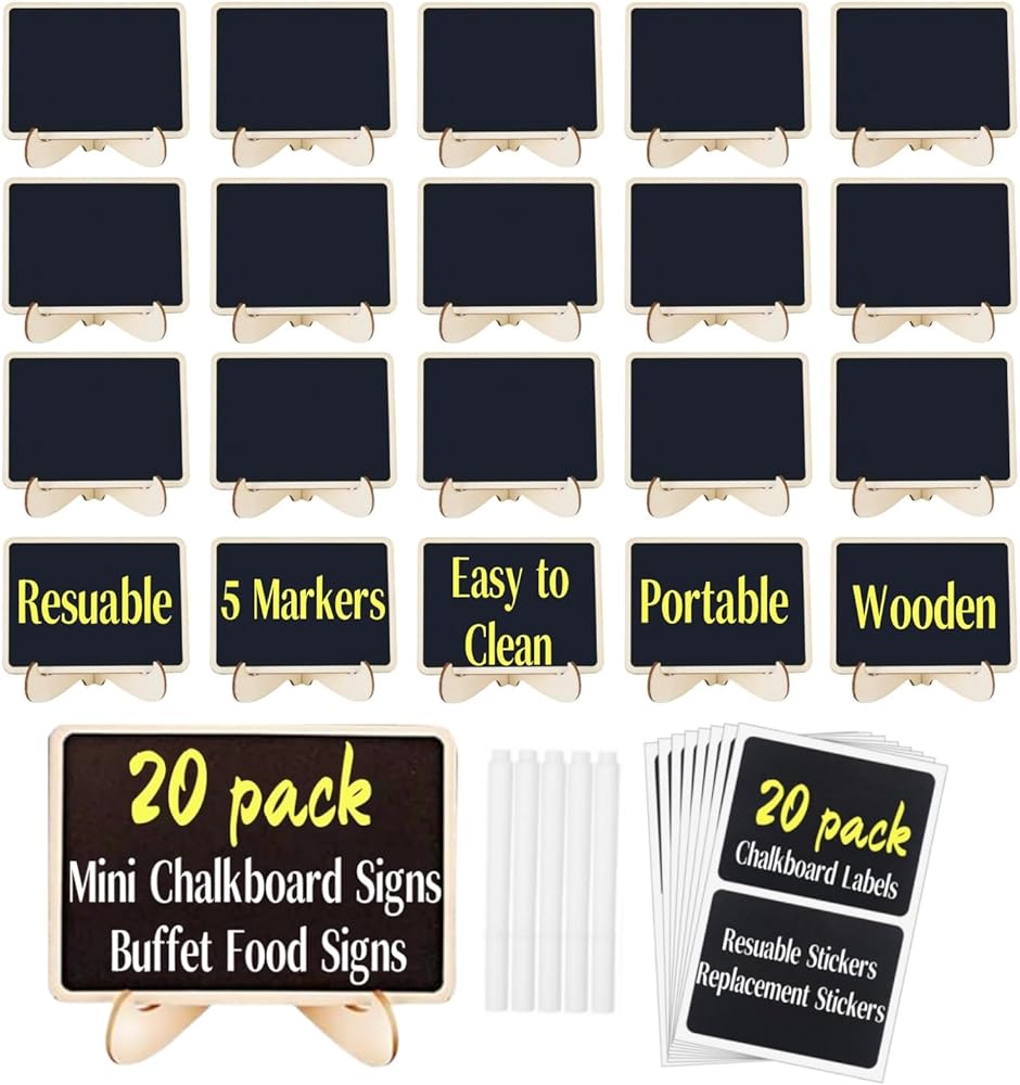 PACKAGE CONTENTS: Set of 20 mini wooden chalkboard signs, 5 white markers,20 chalkboard labels stickers, each featuring a built-in easel stand for versatile display options
