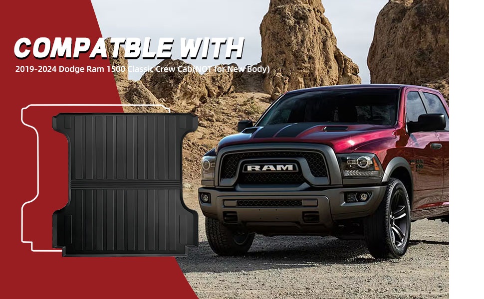 ★【Perfect Fit for 2019-2024 Ram 1500 5.7" Bed】 Truck bed mat is specifically designed to match the contours of your Ram 1500 truck bed, ensuring a seamless and flush fit that covers every inch of the bed floor.