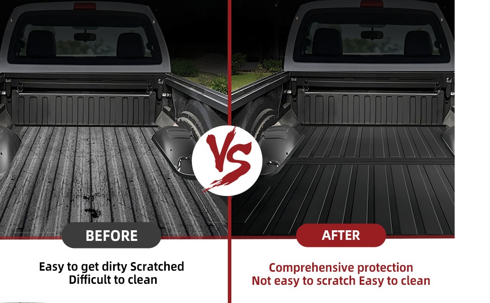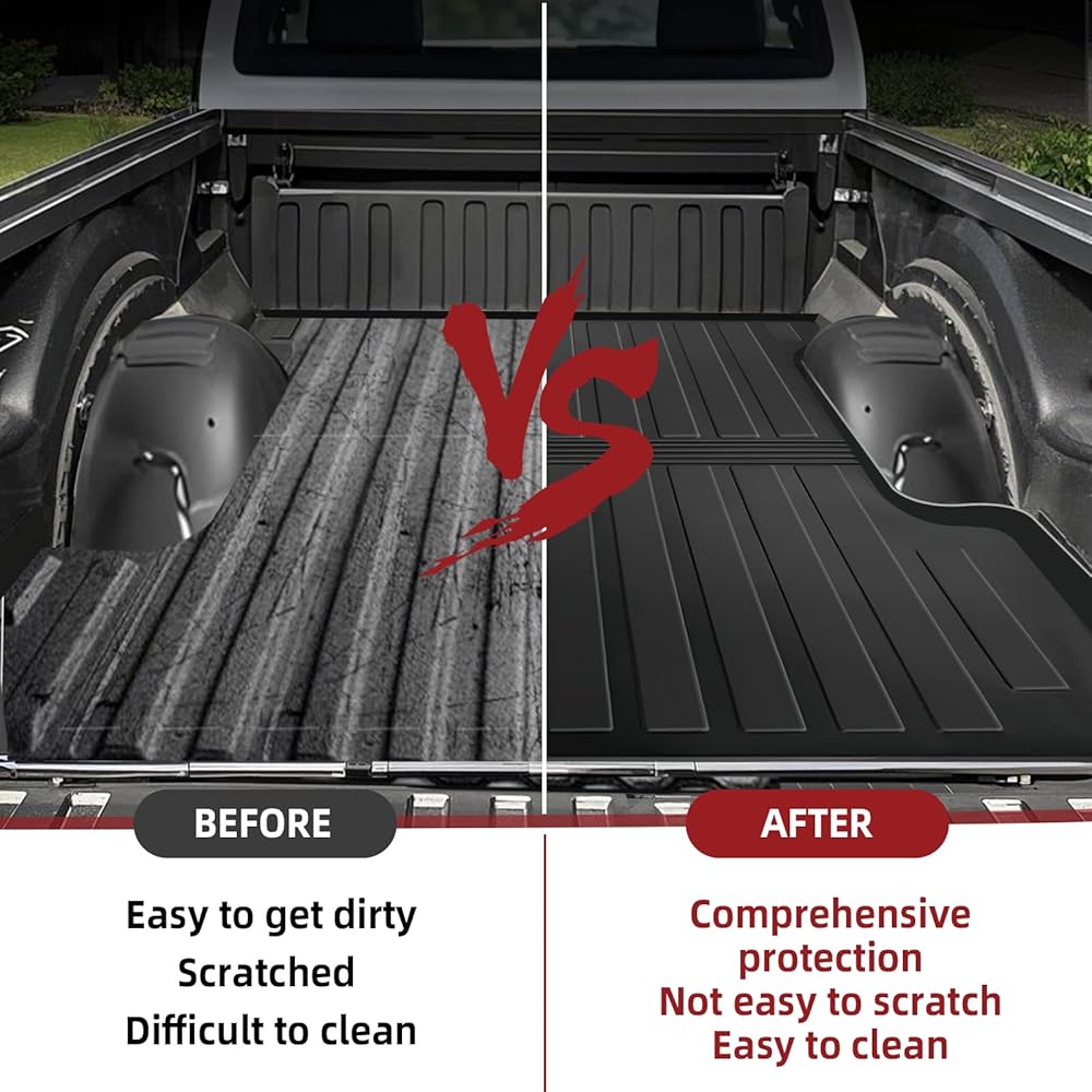 ★【Heavy-Duty All-Weather Protection】 Truck bed liner is made from high-quality TPE material, like rubber truck bed mat,this truck bed mat provides superior protection against spills, scratches, and UV damage, making it ideal for all seasons and weather conditions.
