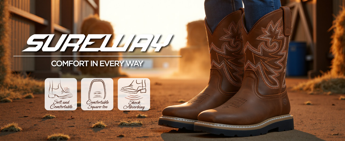 【من السهل ارتداء】 تم تصميم الأحذية الغربية Sureway Square الجديدة مع علامات تبويب جانبية سهلة وإيقافها. حتى خارج الوظيفة ، أصبحت أحذية إصبع القدم المربع من إصبع القدم الغربي خيارًا مبدعًا للأحذية. ارتدها في أي طقس للحفاظ على راحة قدميك طوال اليوم.