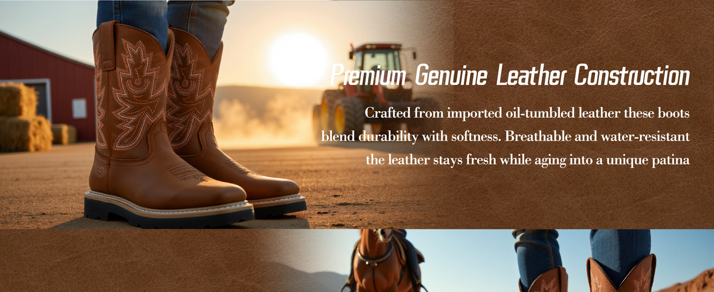 【جلود متينة بنسبة 100 ٪】 أحذية غربية مربعة تستخدم الأجزاء العلوية من الجلد المستورد الأصلي لمزيج مثالي من الوعرة والنعومة. على عكس المواد الاصطناعية ، فإن الجلود المستوردة لها عزل طبيعي وتسمح بتدفق الهواء الطبيعي ، مما يساعد على منع رائحة القدم والحفاظ على أقدامه باردة ، مع إبقائها جافة ومريحة في البيئات الرطبة. يبدو الجلود ذات الشكل النفطي أفضل مع مرور الوقت.