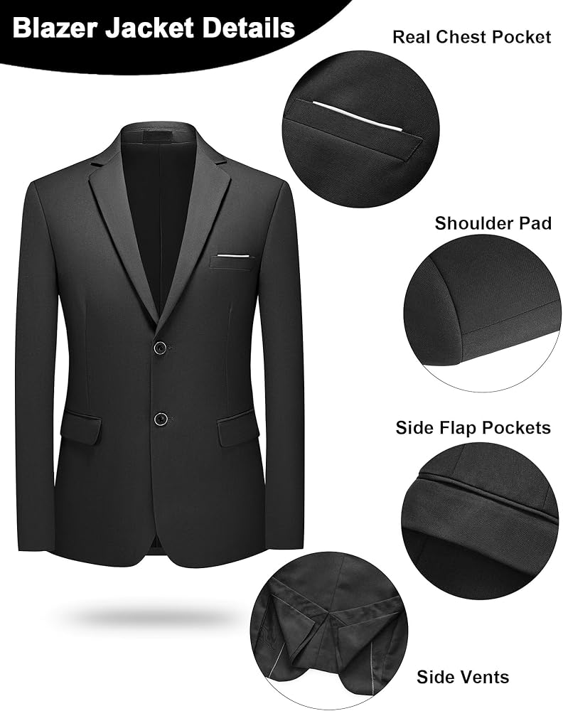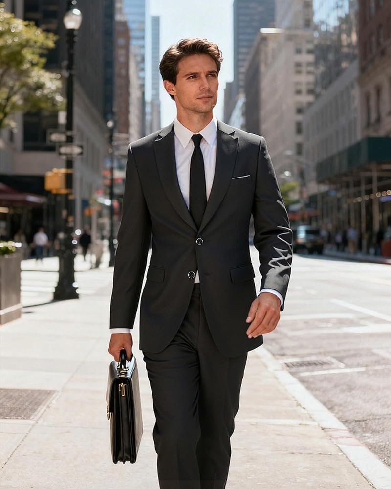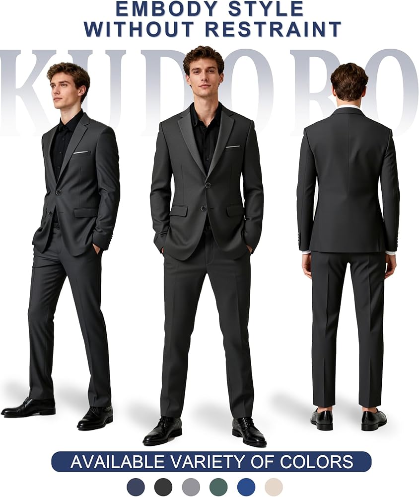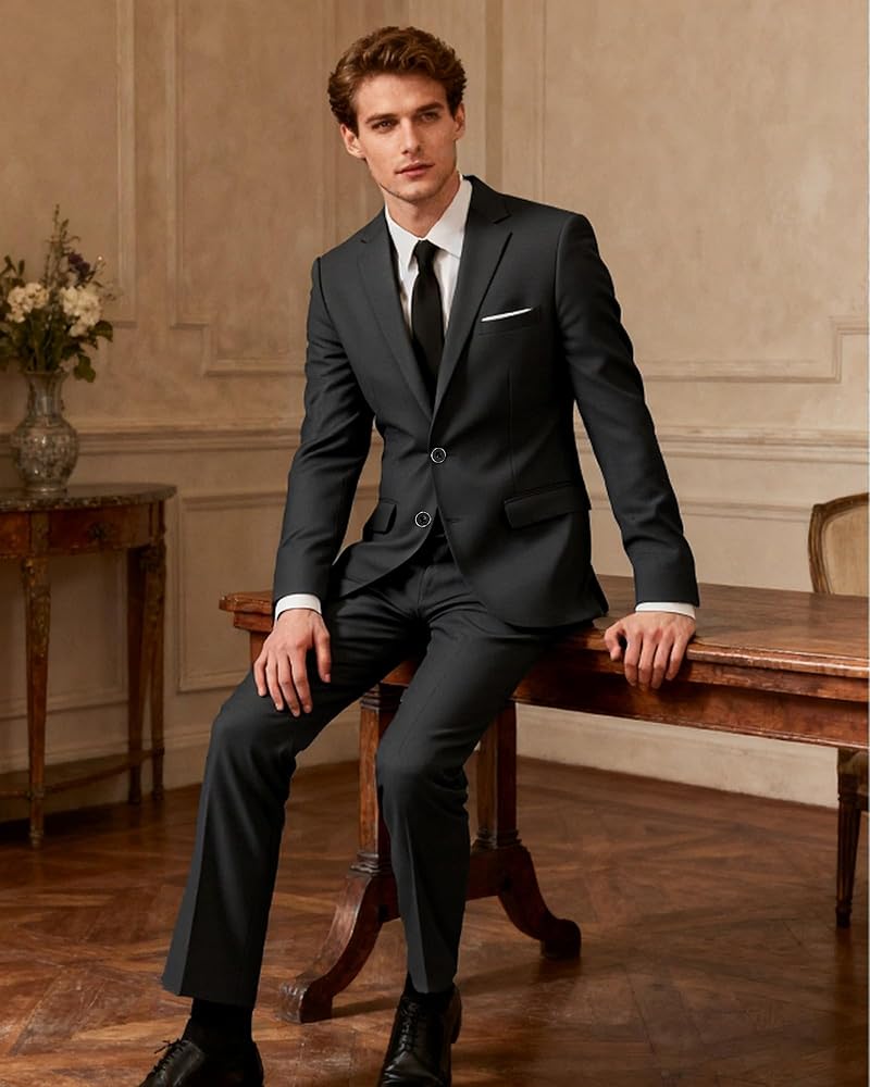 Premium 2-Piece Suit Set: This men's tuxedo suit set includes a tailored blazer with two button, matching trousers, and a complimentary tie—everything you need for a polished look. Perfect as a wedding suit for men or prom suit, this 2-piece suit delivers exceptional value with the bonus tie.