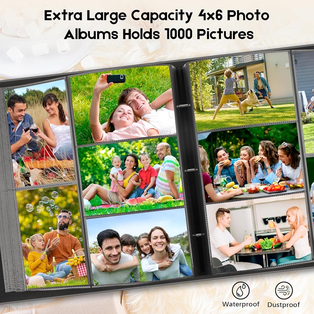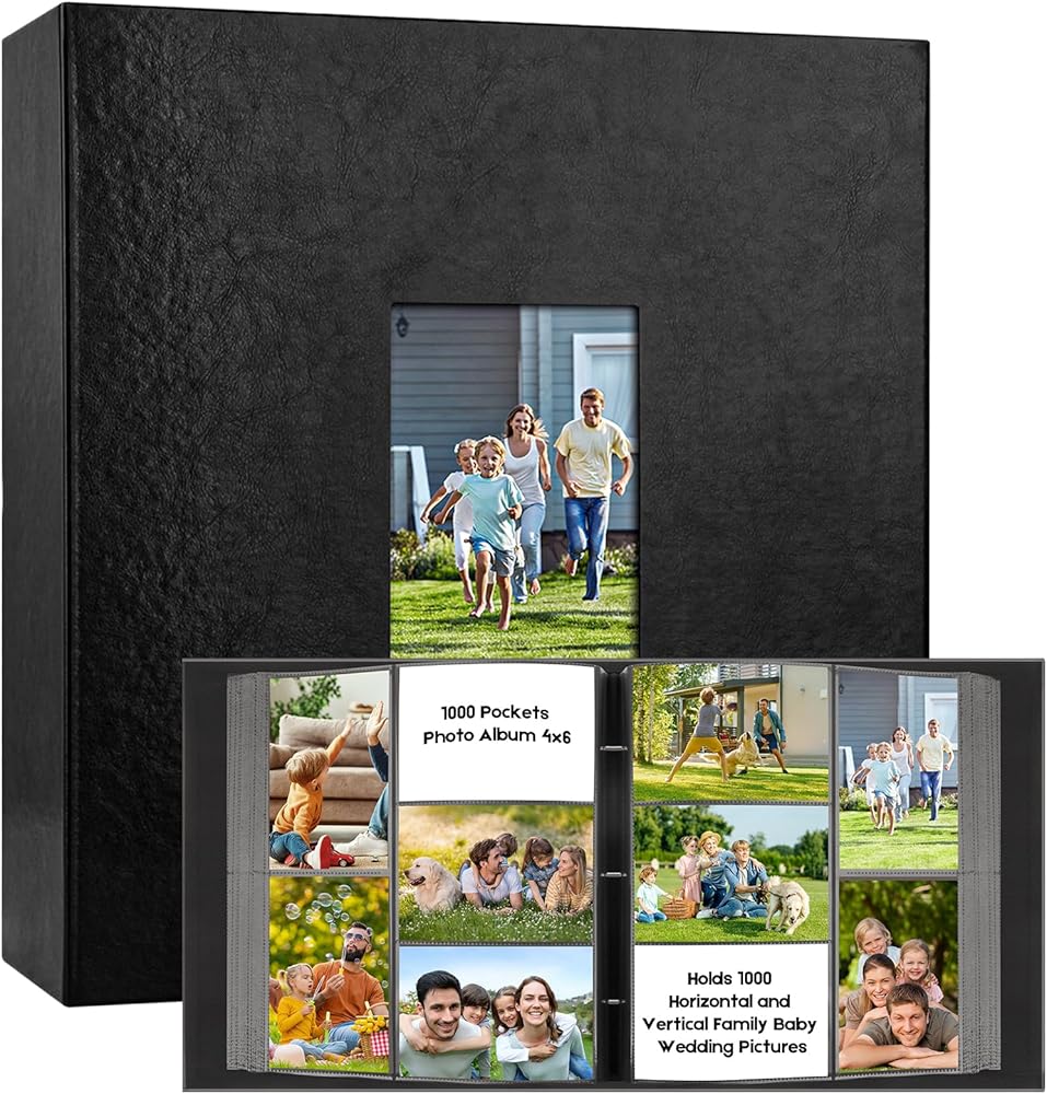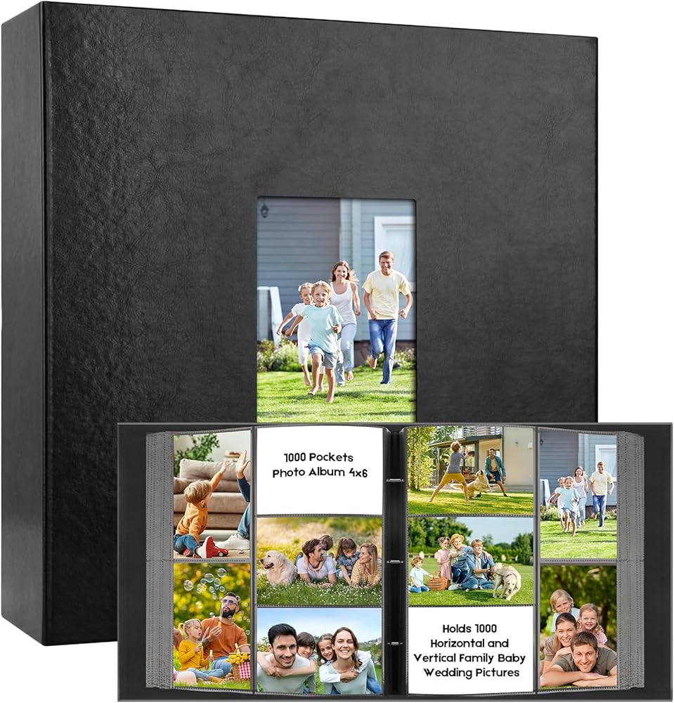 • سعة كبيرة - تمتلك ما مجموعه 1000 صورة 4x6 (100 صفحة مع 10 جيوب لكل صفحة). تخزن كل من الصور الأفقية والرأسية بشكل آمن. يفتح مثل كتاب لسهولة المشاهدة والمشاركة.