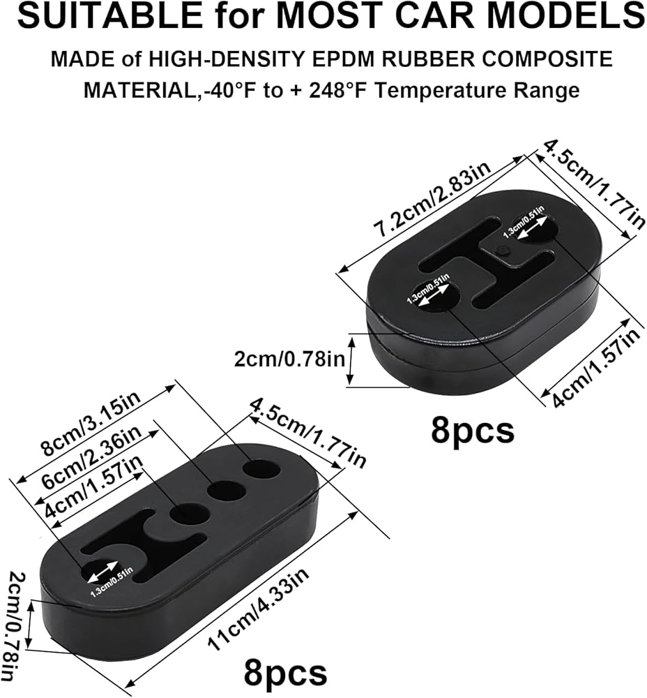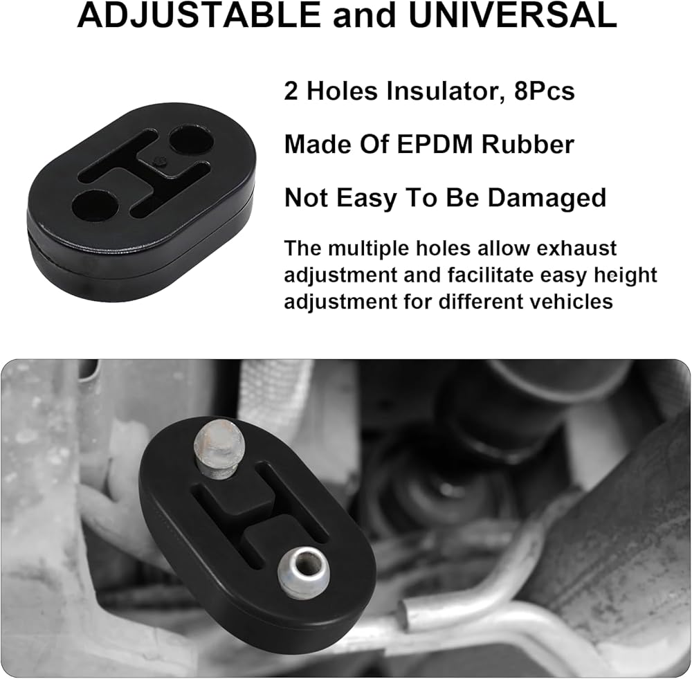 【Complete All-in-One Kit】 This 16 Pcs kit has everything for exhaust repair. Includes 3/8" zinc-coated rods (straight & 90° bend) and heavy-duty rubber insulators (2-hole & 4-hole). No need to buy parts separately. Universal mount for cars, trucks, and SUVs.