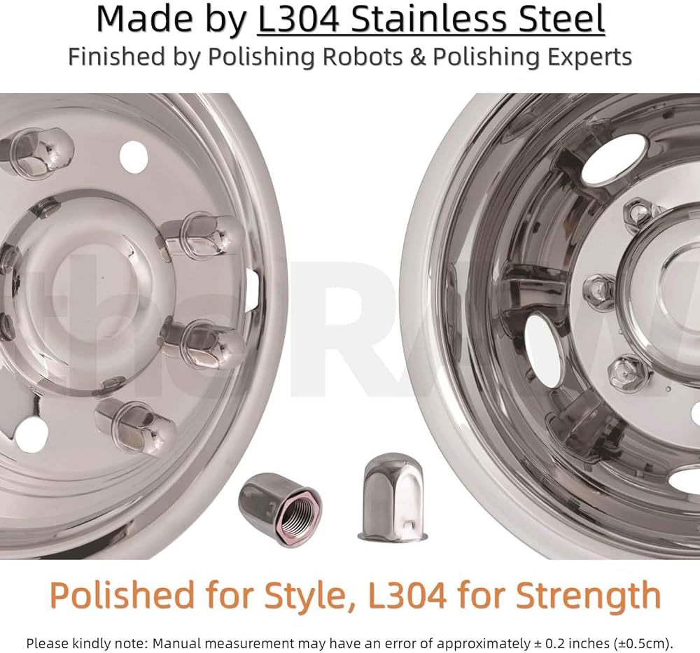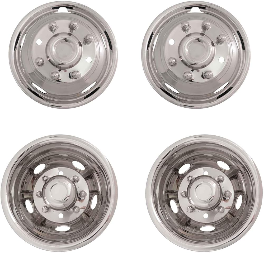 the RAW Polished 17" Wheel Simulators, 8 Lug Wheel Simulator Kit for 2011-Current Chevrolet/GMC C/K3500 Dually Wheel Cover Set, for 17" x 6.5" Dual Wheel, Bolt on mounting (L304 Stainless Steel)