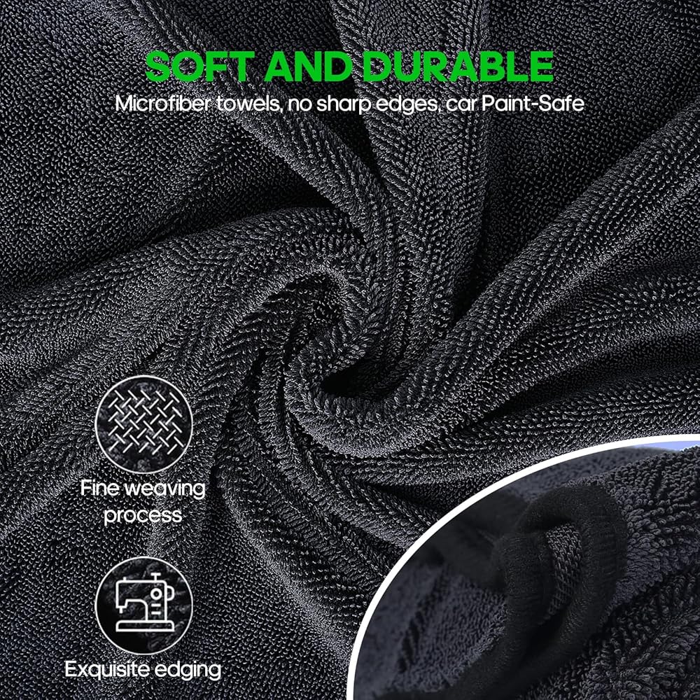 The Microfiber Car Drying Towels use advanced twisted yarn ultra-fine fiber technology, which absorbs water without leaving any stripes, making them an ideal choice for keeping the car spotless after washing