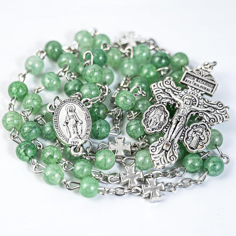 Exquisite Water-Dyed Glass Beads Experience the unique beauty of our rosary. Each bead is crafted from high-quality water-dyed glass, showcasing a mesmerizing depth of color and a smooth, comforting feel in your hands during prayer.