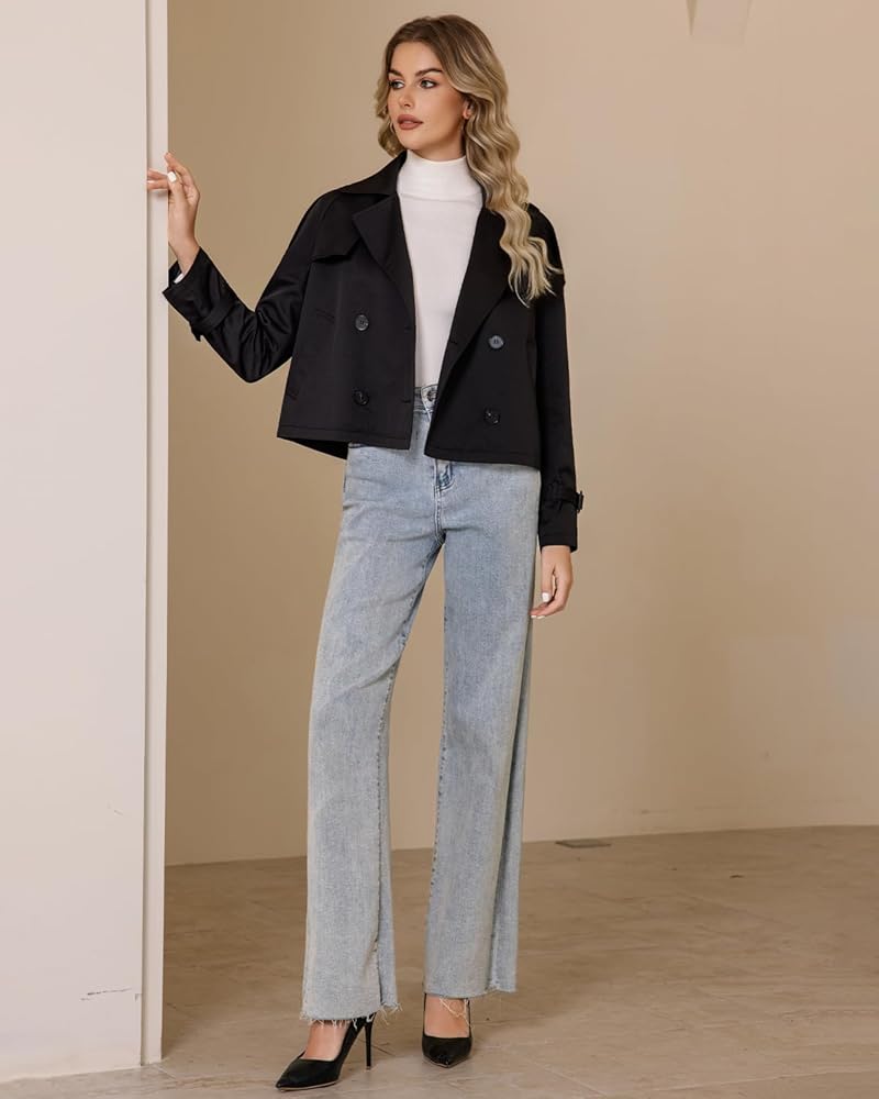 【All Occasions】:The cropped trench coat is designed to be a versatile piece for spring, autumn, and mild winter weather. Its adaptability makes it suitable for a variety of settings, from professional environments to casual outings, ensuring you look polished and well-dressed in any situation. This coat is an excellent choice for those who value both style and functionality in their clothing.
