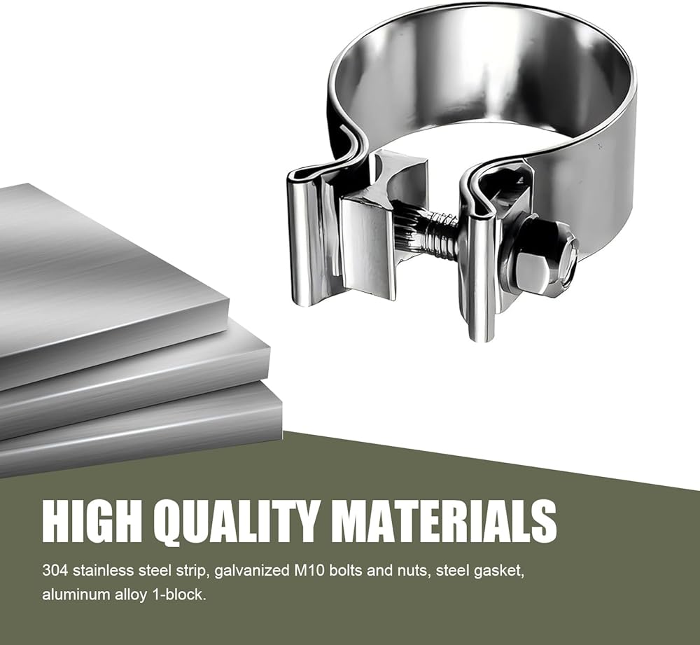 High Quality: This exhaust clamp is made from high-quality metal materials that are resistant to rust and deformation. High-hardness bolts provide excellent clamping and sealing capabilities, capable of withstanding significant clamping forces.