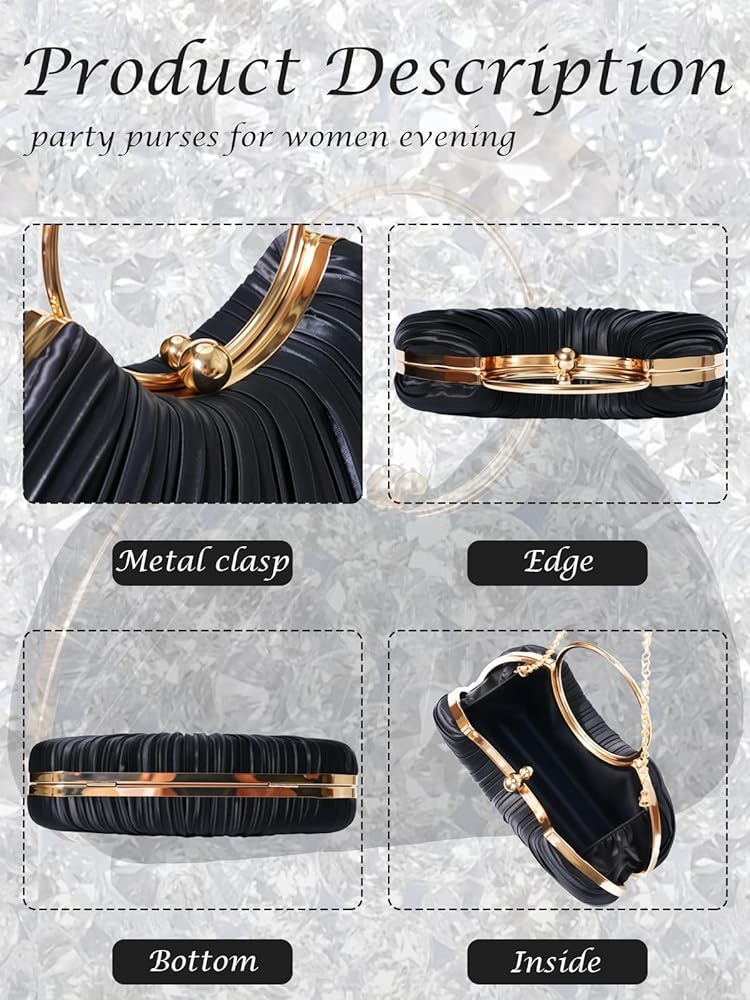 💎 التصميم الأنيق والقابل للتحويل: يضم مشبك معدني أنيق وحزام سلسلة قابل للفصل ، تأتي هذه الأكياس المسائية الأنيقة بالذهب والأسود والفضي ، وتنتقل دون عناء من قابض أنيق إلى حقيبة كروس ، مما يجعلها قابض الزفاف النهائي للأحداث المتطورة.