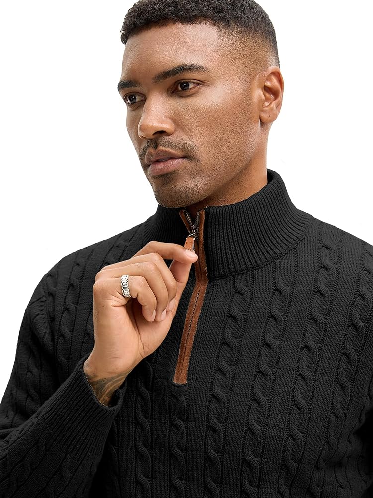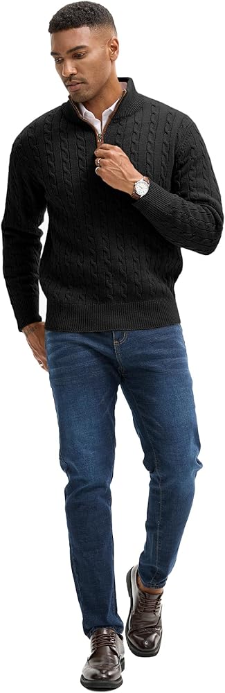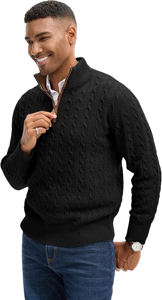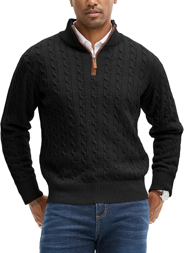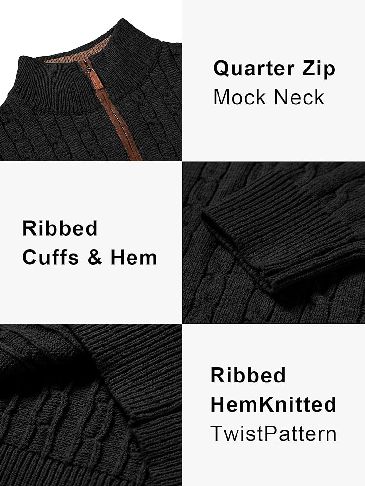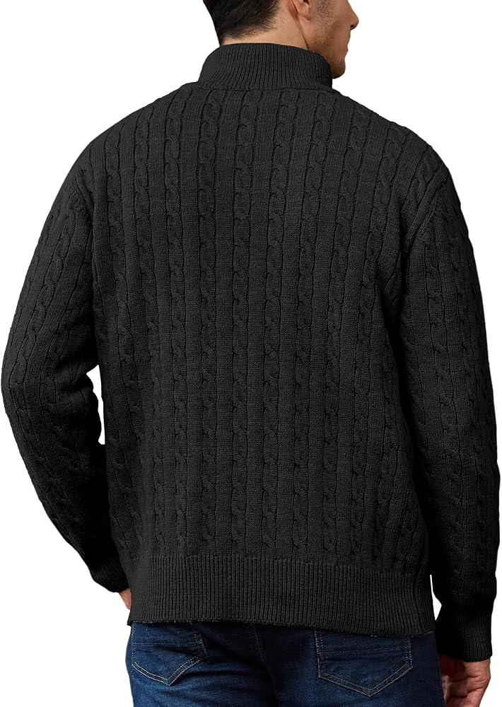 تصميم كلاسيكي: تتميز السترة الرجالية بسحاب بسحاب إغلاق كلاسيكي من أجل تشغيل سلس وسلس؛ توفر الأصفاد والحاشية المضلعة الضيقة دفءًا دائمًا للجسم؛ يضيف النسيج الرائع المنسوج للكابل مزيدًا من الملمس والأناقة.
