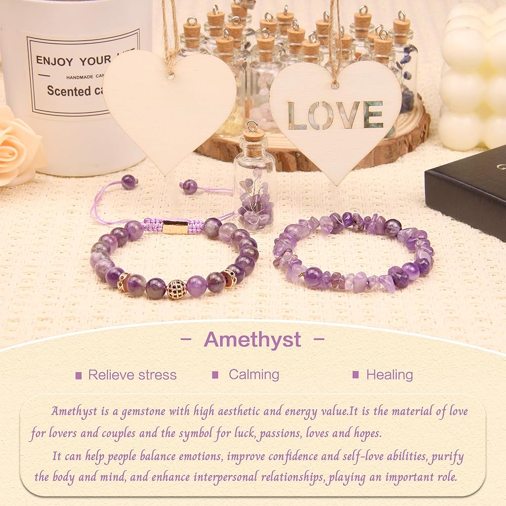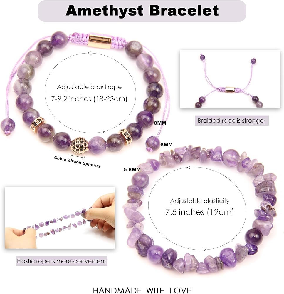 الأساور المصنوعة من الخرز ليست مجرد هدية تبدو جميلة! تشتمل العبوة على سوار من اللازورد المطاطي منسوج يدويًا مقاس 8 مم (قابل للتعديل تقريبًا 7-9.2 بوصة)، وسوار مرن من اللازورد الأسود من الحجر المسحوق مقاس 5-8 مم (7.5-9 بوصة)، وزجاجة أمنيات شجرة كريستال مصنوعة يدويًا (1.5*0.7 بوصة)، وبطاقتين خشبيتين على شكل قلب (2*2 بوصة)، بالإضافة إلى قطعة قماش لتلميع المجوهرات. التركيز على الفوائد والوظائف المتعددة!