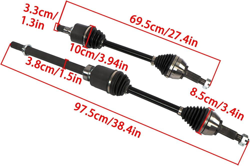 • Package Includes: 1x Front Left CV Axle Shaft (Driver Side), 1x Front Right CV Axle Shaft (Passenger Side)