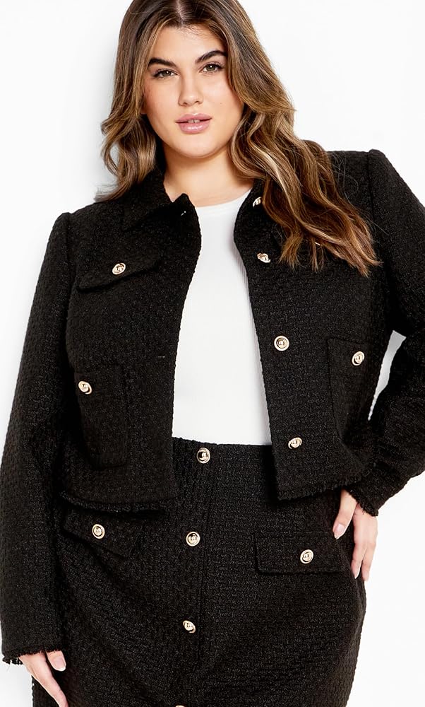 Statement Details: Elevate your style with luxe gold button accents and faux pocket detailing, perfect for that polished, high-fashion touch.