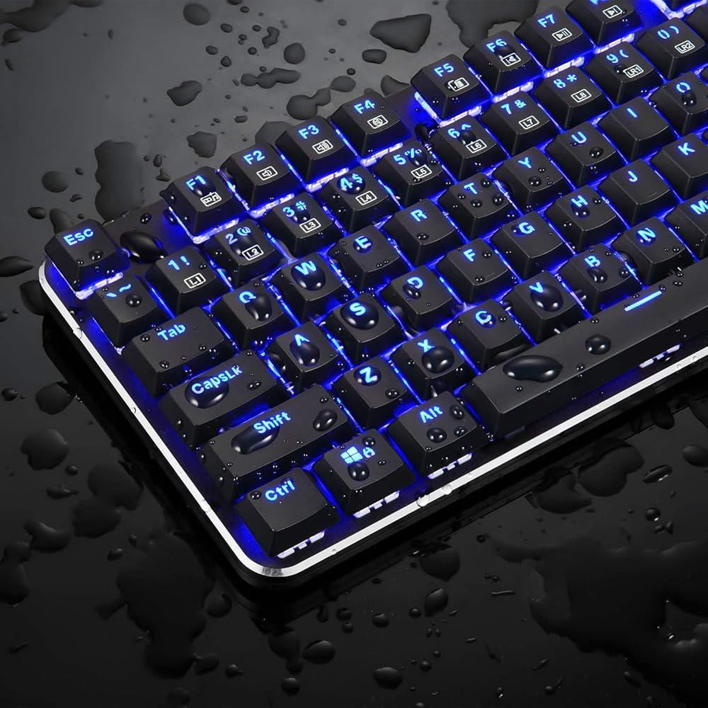 لوحة مفاتيح ألعاب إيجلتيك KG060-BR زرقاء LED خلفية زرقاء اللون مع مفتاح USB 87 مفتاح منخفض مع مفاتيح بنية الكرز هادئة لأجهزة الكمبيوتر الشخصي - (أسود)