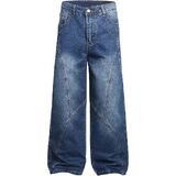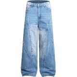 • ملاءمة مريحة. تم تصميم هذا الجينز بقصة فضفاضة وساق واسعة، ويستقر عند الخصر الطبيعي للحصول على مظهر أكثر مرونة وأكثر تفصيلاً، مما يجعله أنيقًا عند الارتداء.