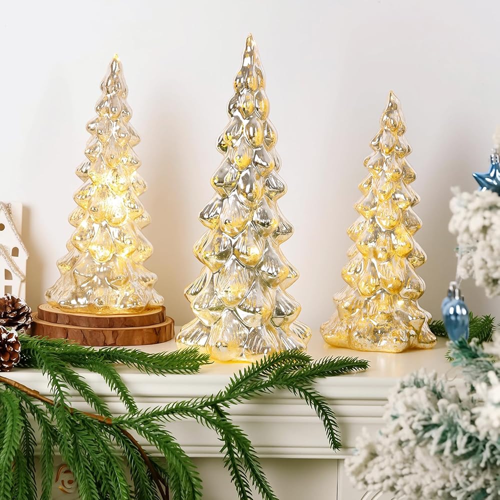 Specification: Mercury glass Christmas tree set of 3, satisfying your decoration use and replacement needs during holiday