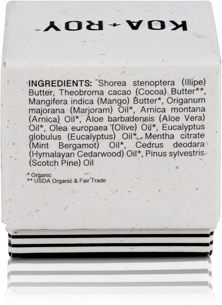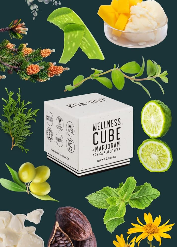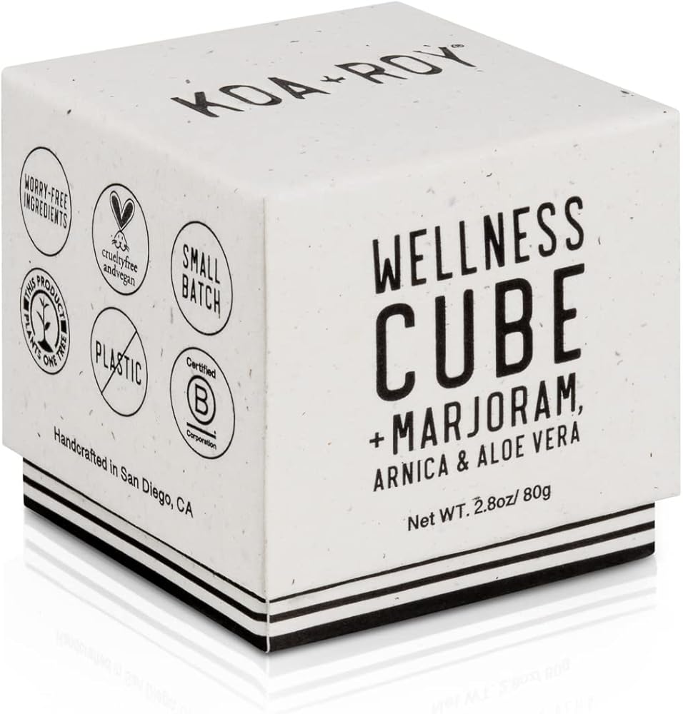 خذ روتين العناية بالبشرة الخاص بك إلى المستوى التالي مع KOA+ROY Wellness Cube. في بعض الأحيان ننسى تخصيص الوقت لروتيننا اليومي للعناية بالجسم، ولهذا السبب صنعنا لك شيئًا سريعًا وفعالًا وسهلاً! يعد Wellness Cube طريقة طبيعية تمامًا لمساعدة جسمك على الاسترخاء أثناء تنعيم بشرتك. يستخدم مزيجنا القوي من النباتات والزيوت العطرية العلاج العطري لتوفير تجربة مهدئة ومريحة مما يجعلك نشيطًا لبقية اليوم. التعليمات: قم بتدليك المكعب على بشرتك حتى يتم إطلاق الكمية المطلوبة من الزيت. استخدم المكعب للعمل على تلك العضلات والمفاصل الملتهبة، مع التركيز على المناطق المؤلمة والمتورمة. يمكنك أيضًا أن تطلب من أحبائك مساعدتك في تدليك تلك الأماكن التي يصعب الوصول إليها. محمولة بما يكفي لأخذها إلى أي مكان - كرر ذلك حسب الحاجة.