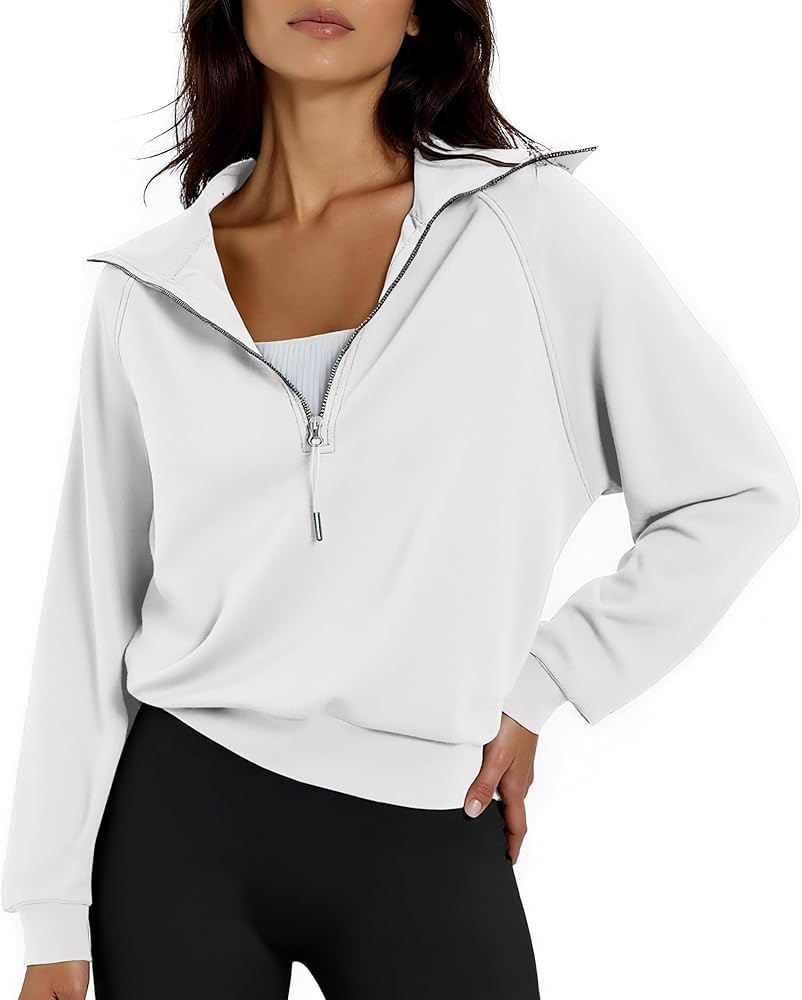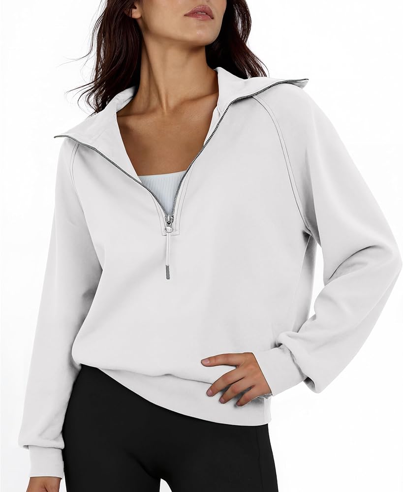 【سهل التصميم والطبقات】: إضافة يجب اقتناؤها لخزانة ملابسك الموسمية، هذا السويت شيرت النسائي بنصف سحاب يمكن ارتداؤه بسهولة مع السراويل أو الجينز أو السراويل الرياضية أو السراويل الرياضية. ارتديه فوق قمصان بدون أكمام أو قمصان قصيرة أو سترات أو أي ملابس داخلية مفضلة للحصول على مظهر شخصي