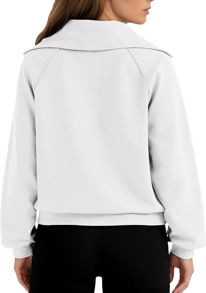 【مقاس قصير مريح بنصف سحاب】: يتميز بتصميم عصري بسحاب ربع، وطول قصير، وأكمام طويلة مع جزء داخلي غير من الصوف. توفر السترة النسائية خفيفة الوزن الدفء المثالي للربيع والخريف والشتاء