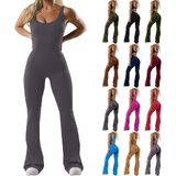 ❤️The 2025 chic backless jumpsuit features a hollow backless shoulder strap, a sweet neckline with a detachable padded bra, and bell bottoms that create a fashionable and modern silhouette.