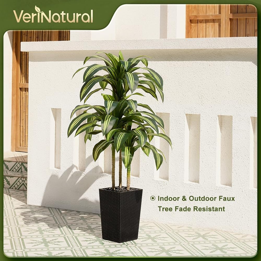 Lifelike Greenery with Layered Design: This 5ft artificial dracaena tree has lush layered foliage and handcrafted trunks, designed to replicate the charm of a real tree. Perfect for adding natural detail and depth to your home, studio, or any styled space