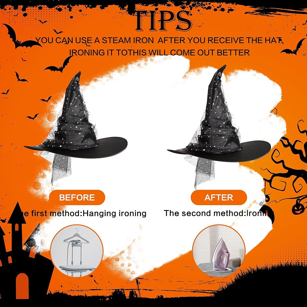 🔮 Easy Care & Ready to Party Your hat may arrive with slight shipping creases. To restore its perfect shape, simply use a steamer or iron on low heat with a damp cloth as a barrier. It's that easy! Then, it's ready to help you cast a spell of style and fun year after year.