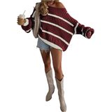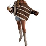 Cozy sweaters for women, spring fall clothes, y2k pullover sweaters, brunch tops for women, drop shoulder, striped print, color block, long sleeve, loose fit