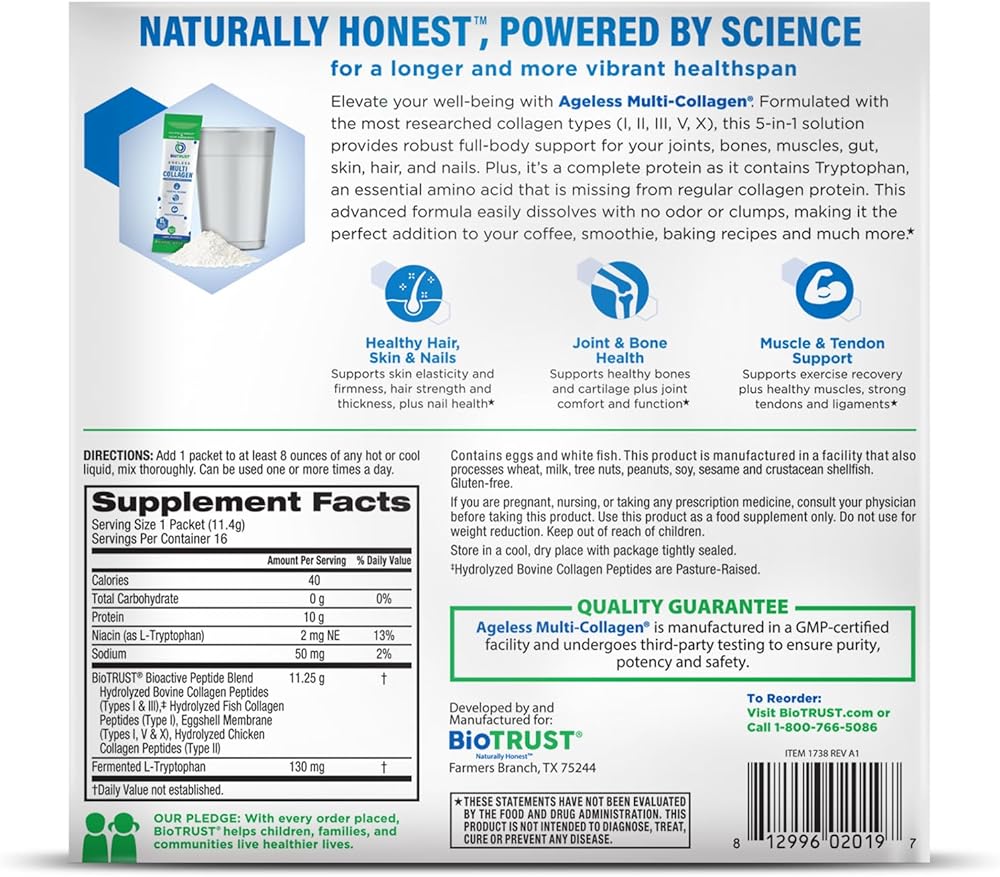بروتين الكولاجين المتعدد الحيوي. يتميز بببتيدات الكولاجين النشطة بيولوجيًا والمتحللة بشكل طبيعي لسهولة الامتصاص ويتميز بالحمض الأميني تريبتوفان، مما يجعله بروتينًا كاملاً.