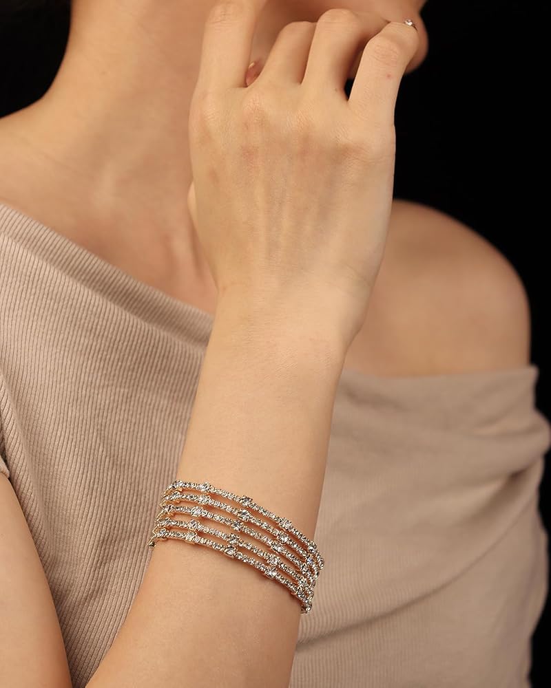 • Sparkling Style: This multi-layered rhinestone bracelet features beautiful teardrop shaped crystals that will add just the right amount of shimmer to any outfit.