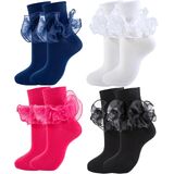 تحتوي كل عبوة على 3 أزواج من الجوارب النسائية المكشكشة للبالغين، بألوان مثل الأبيض والأزرق والأسود والأحمر - متعددة الاستخدامات للارتداء مع ماري جينس والأحذية طويلة الرقبة والمزيد. تتألق هذه الجوارب النسائية المصنوعة من الدانتيل في المهرجانات وحفلات الخمسينيات والثمانينيات والعطلات أو الارتداء اليومي. كما أنها تمثل هدايا جميلة: جوارب بيضاء مكشكشة لعيد الأم، جوارب مكشكشة لأعياد الميلاد، أو هدايا التخرج