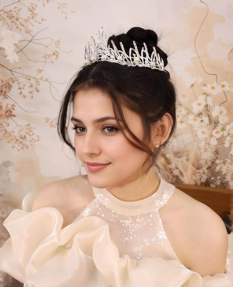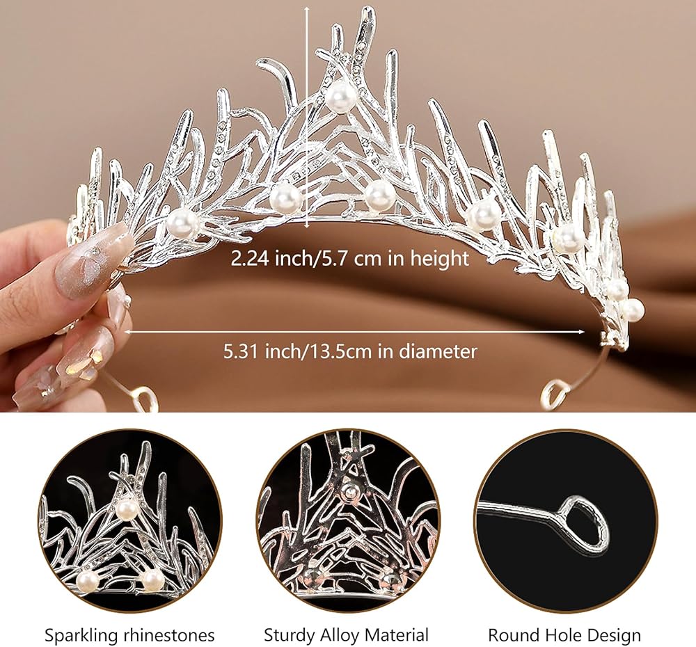• مثالي للهدايا: تاج اللؤلؤ الأنيق، خاص للعرائس والزوجة والأمهات والصديقات ولنفسك. سواء كنت في مناسبة خاصة أو كهدية لنفسك، فإن تاج التاج اللامع هذا يمثل هدية مدروسة لا تُنسى