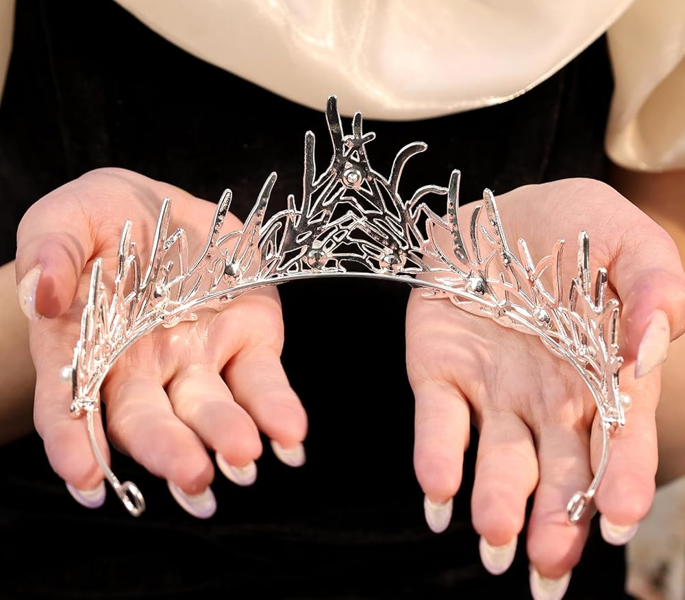 • تصميم رائع: يتميز هذا التاج الكريستالي العتيق بمجموعة مذهلة من الكريستال في تاج معدني ذهبي أو فضي لامع، مما يخلق مظهرًا أنيقًا وملكيًا