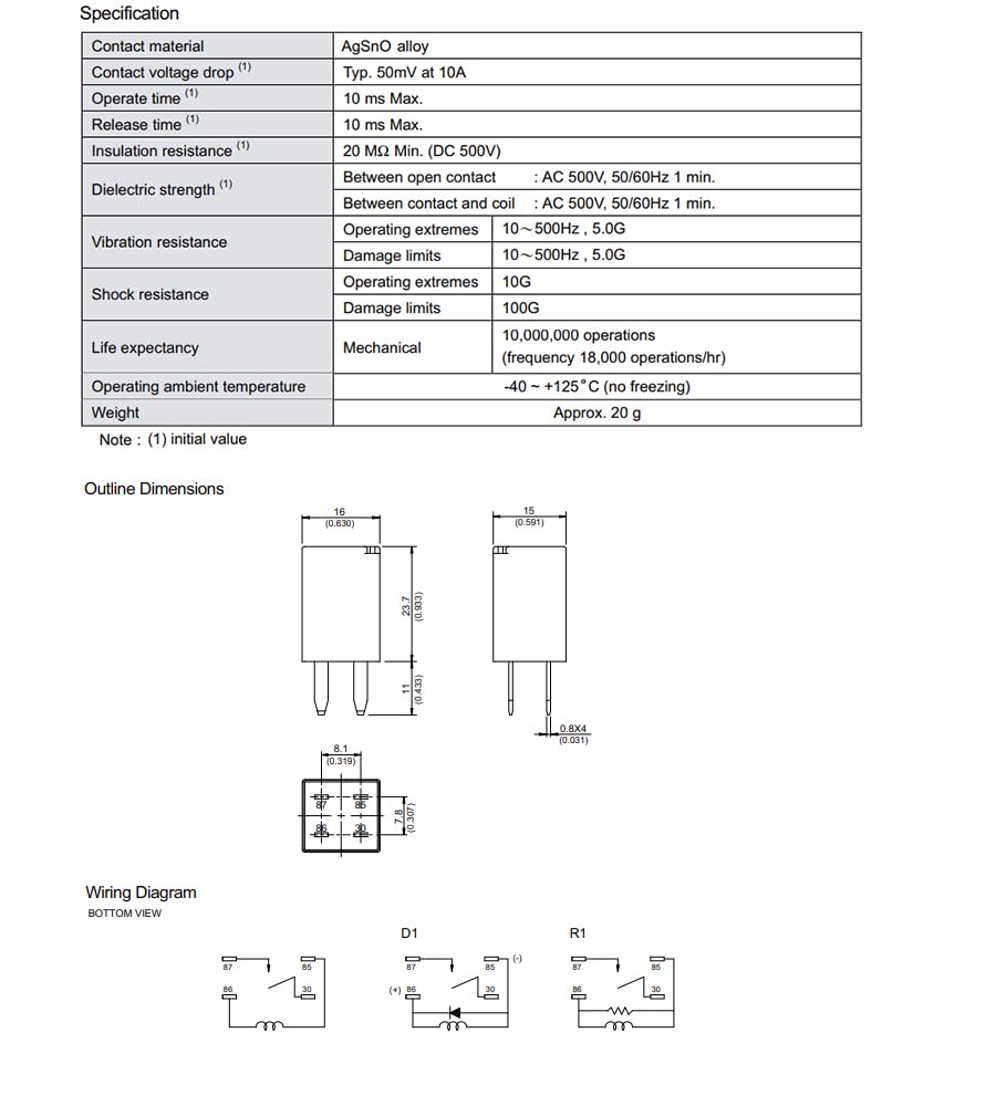 High Rating and Temperature Withstand: This ultra micro ISO automotive relay is designed to handle high currents of up to 20A and can withstand ambient temperatures up to 125℃, ensuring reliable performance even in demanding conditions