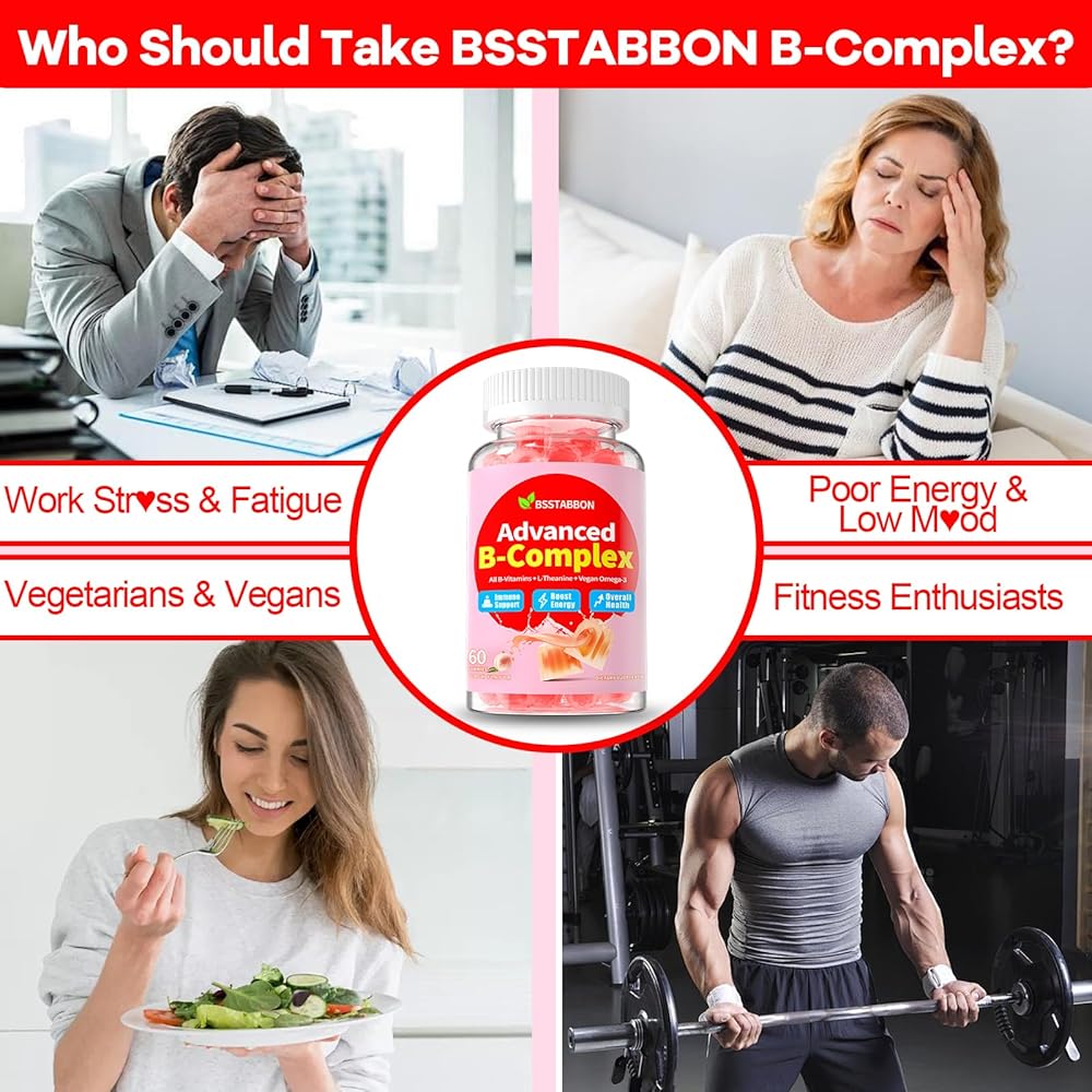 صمغ فيتامين ب المركب المتقدم: ادعم وظائف جسمك الأساسية مع مزيج BSSTABBON المركب B المتطور، والذي يضم جميع فيتامينات B الثمانية الرئيسية (B1، B2، B3، B5، B6، B7، B12، والفولات) لتعزيز إنتاج الطاقة، والتمثيل الغذائي، والصحة، وصحة القلب، والعافية العامة. معزز بفيتامين C، D3، E، الزنك، الكولين، الإينوزيتول، TMG، أوميغا 3 (EPA+DHA)، المغنيسيوم، ومزيج الأعشاب. توفر العلكة لدينا تغذية متوازنة في شكل لذيذ ومريح.
