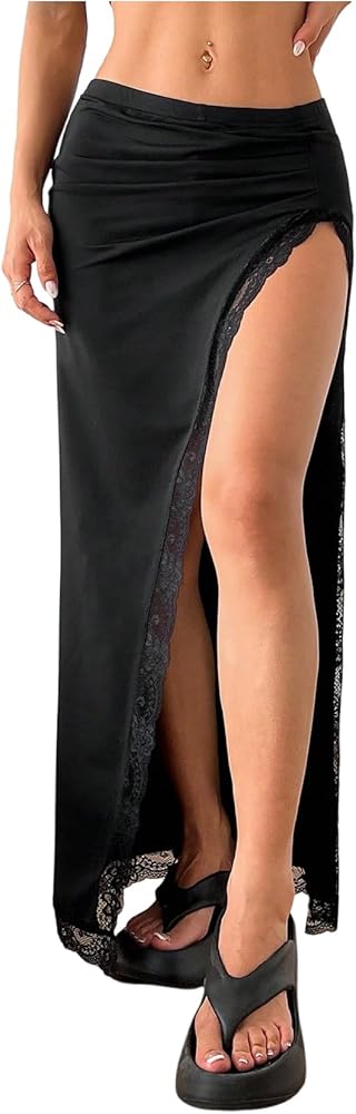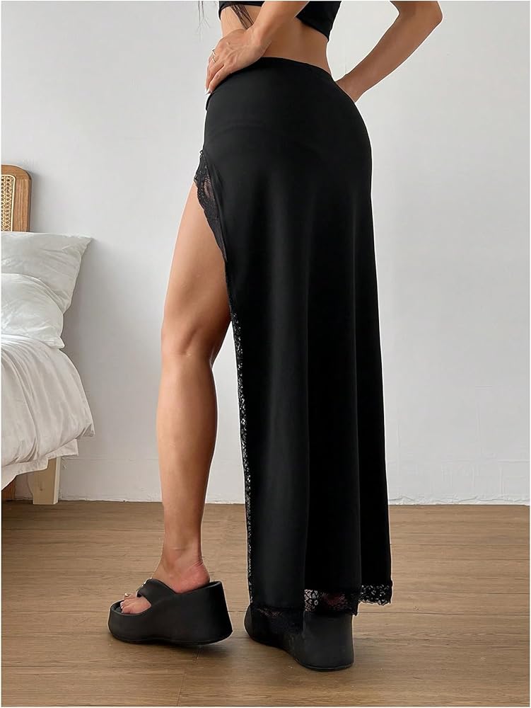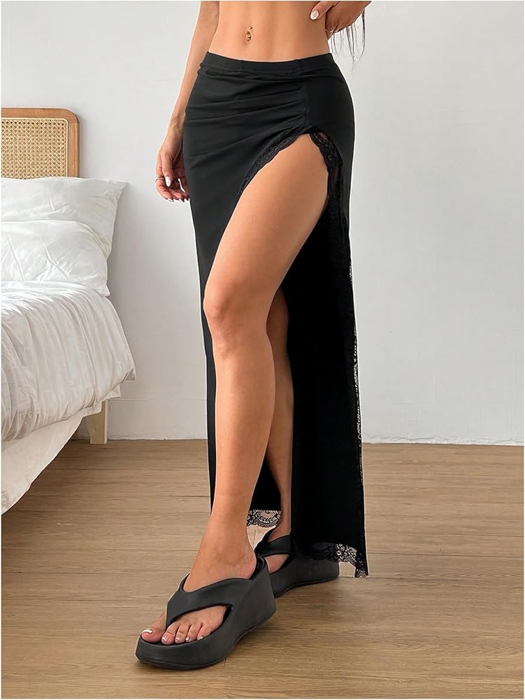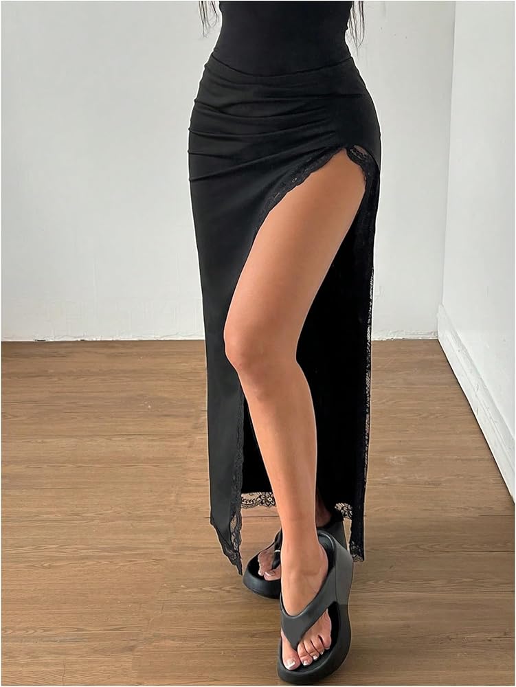 • Feature: Lace skirts for women trendy, ruched, elastic waist, low waist, split thigh, long maxi bodycon skirt, womens skirts, fashionable