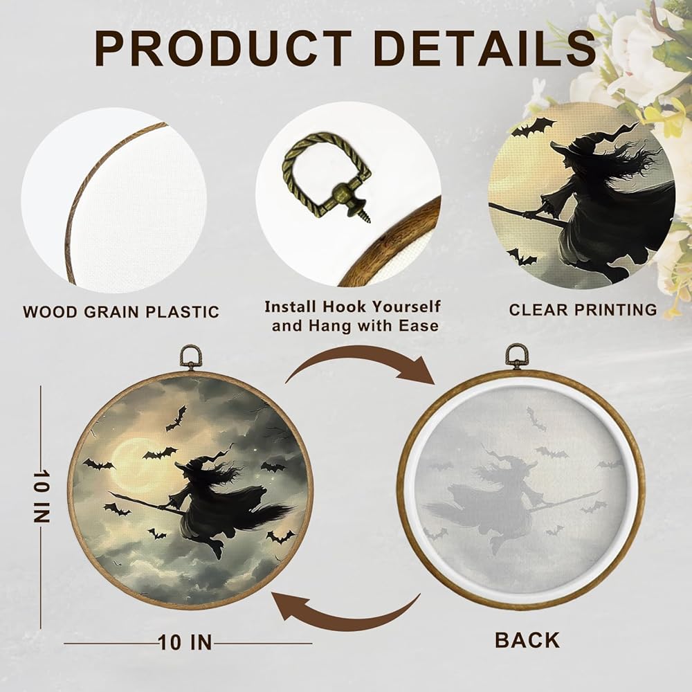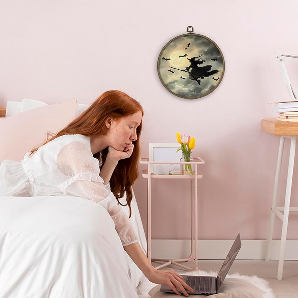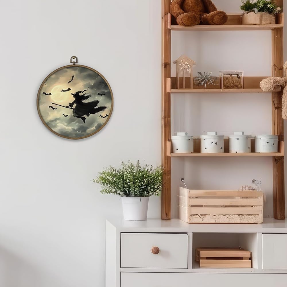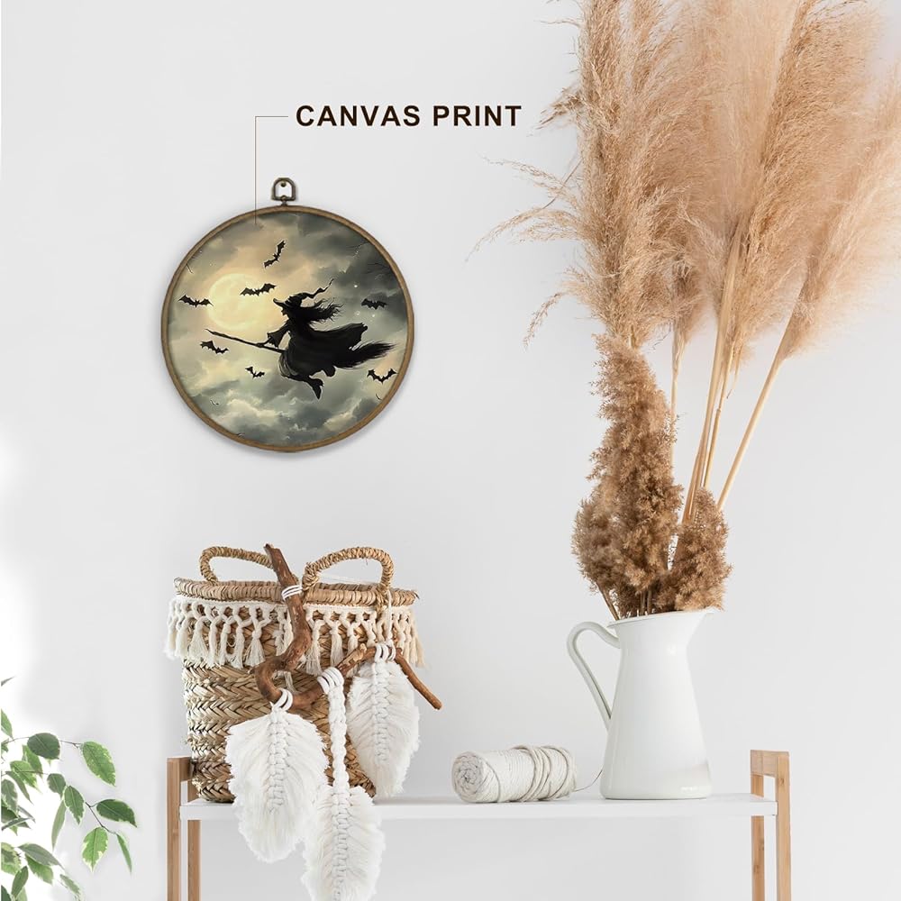 dvhdajed Dark Witchy Halloween Round Wall Art Decor, Witchy Gothic Framed Canvas Art, Magical Moody Academia Moon Halloween Round Wall Hanging Decor for Home Bedroom Living Room, 10x10 Inch