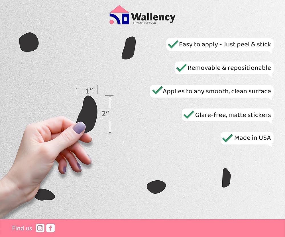 إن ملصقاتنا الجدارية ذات النقاط السوداء غير المنتظمة هي الطريقة المثالية لإضافة بعض الذوق إلى أي غرفة في منزلك. تخلق اللمسة النهائية غير اللامعة والنقاط السوداء الجريئة نمطًا شماليًا فريدًا من المؤكد أنه سيلفت الأنظار. تسمح لك الميزات القابلة للإزالة وتغيير الموضع بإعادة ترتيب الملصقات أو إزالتها بسهولة دون الإضرار بجدرانك. ببساطة قم بتقشيرها ولصقها على أي سطح أملس، وشاهد بينما تتحول غرفتك إلى مساحة أنيقة وعصرية. هذه الملصقات مصنوعة من مواد عالية الجودة لن تضر الطلاء أو تترك أي بقايا خلفها، لذلك يمكنك الاستمتاع بفن الحائط الجديد الخاص بك لسنوات قادمة. استخدمها لإضافة لمسة من الرقي إلى غرفة نومك، أو حمامك، أو غرفة المعيشة، أو غرفة الطعام، أو غرفة الأطفال، أو الحضانة، أو أي مساحة أخرى في منزلك.