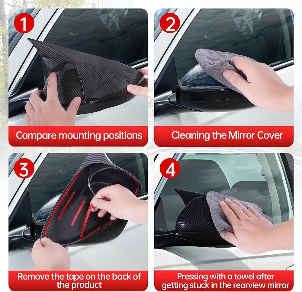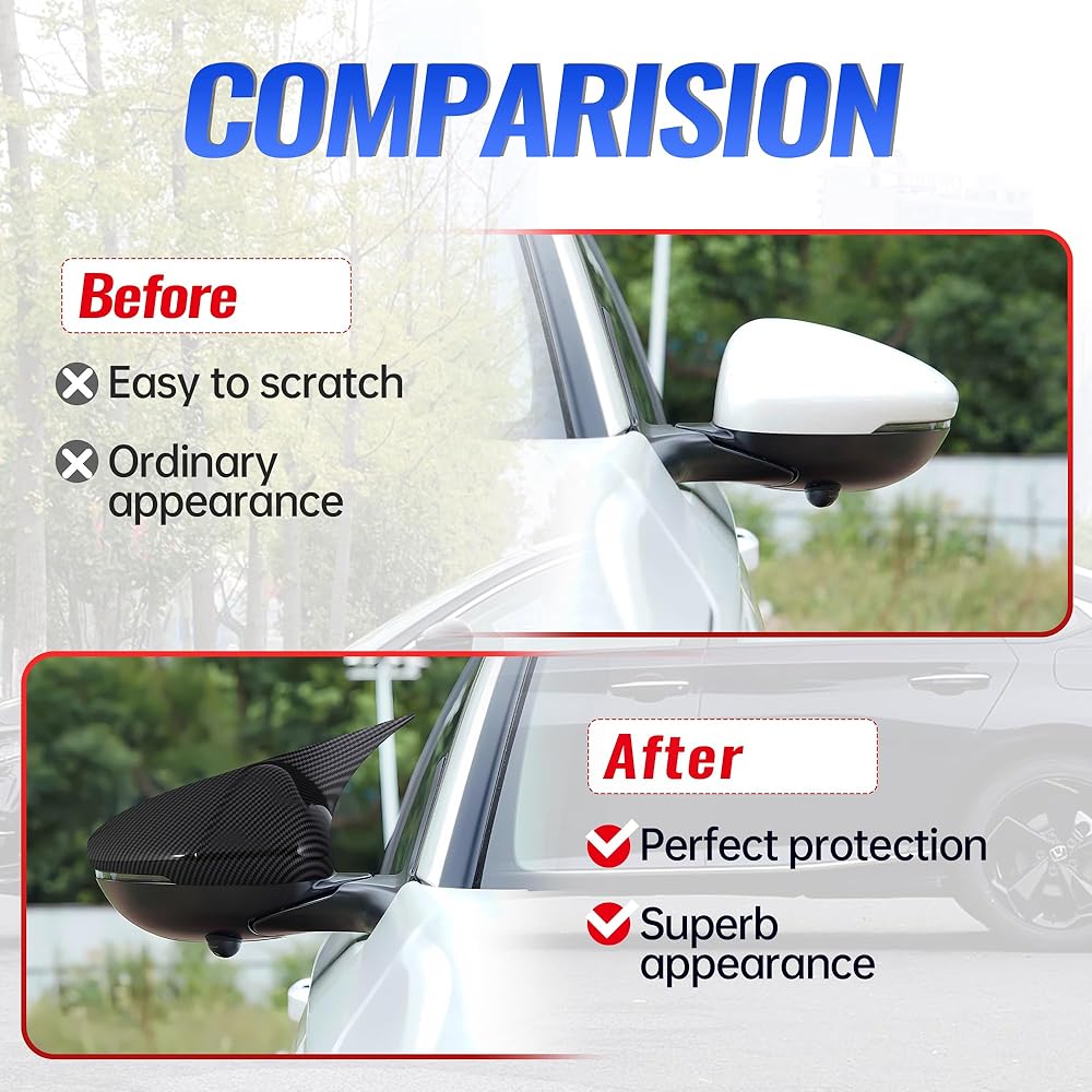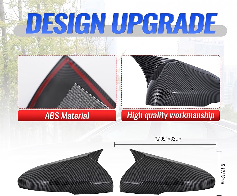 【الجودة مضمونة】الإكسسوارات الخارجية للتوافق العاشر والحادي عشر مصنوعة من مادة أكريلونتريل بوتادين ستايرين عالية الجودة، ومقاومة للاهتراء ومقاومة للماء مما يجعل أغطية مرآة الرؤية الجانبية للسيارة متينة لفترة طويلة ولن تترك علامات على سطح غطاء المرآة أو تتلف مرآة الرؤية الجانبية الخلفية.