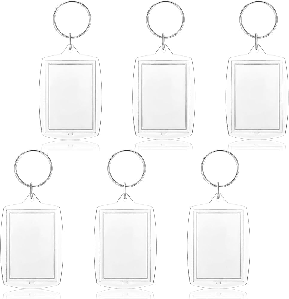 Unleash your creativity with this 6-piece set of Clear Acrylic Keychain Blanks, the ultimate solution for crafting a unique personalized keychain. Each blank is expertly designed to securely hold a standard 1.7 x 1.1 inch photograph, transforming it into a beautiful double-sided photo keychain or picture keychain. This versatile set provides everything you need to create a heartfelt custom keychain for any occasion, from graduations to party favors.