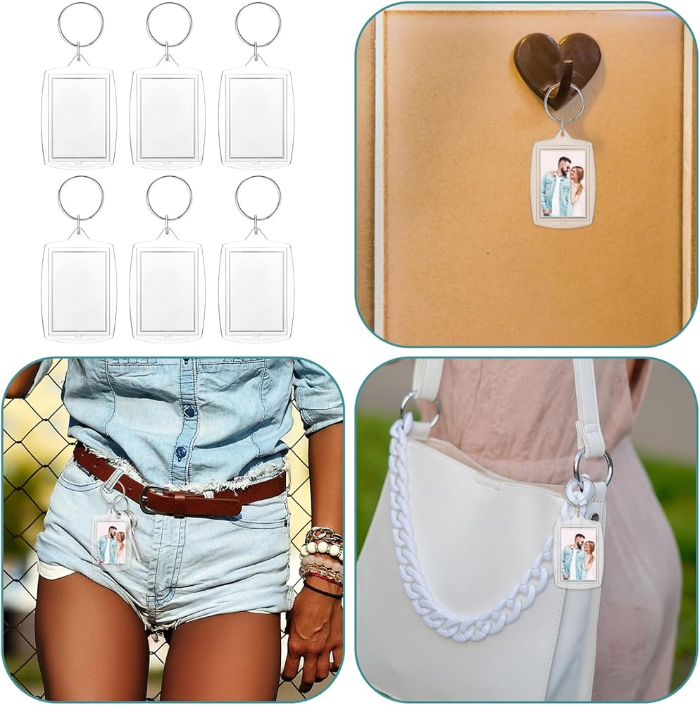 • DIY Double-Sided Photo Keychain Set: These high-quality keychains are perfect for crafting. The clear acrylic keychain blanks allow for double-sided display, turning any image into a cherished custom keychain for a key holder for keychain or a stylish key fob keychain.