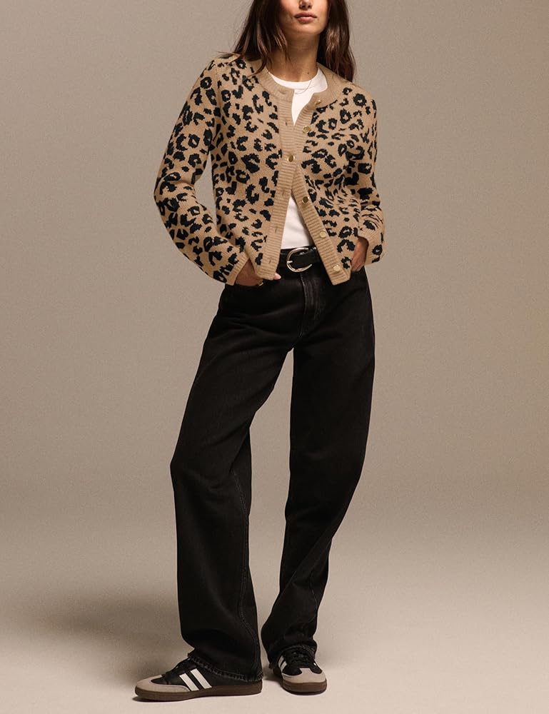 Occasions: Women crew neck short cardigan sweater is lightweight, perfect for office, work, school, party, dating, vacation, wedding, church and daily wear, making you look elegant and chic. Stylish Leopard print cardigan, 2024 leopard sweater for women