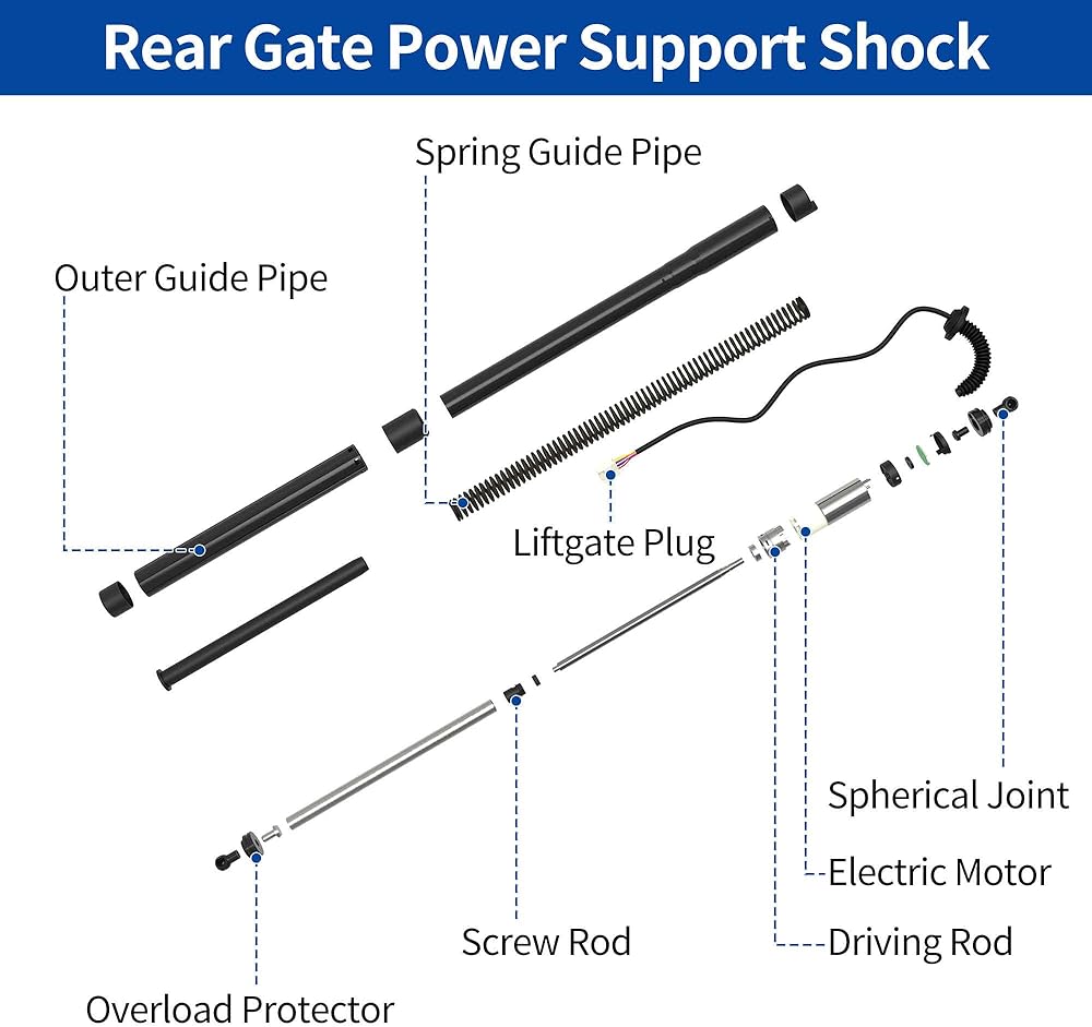 [ميزات دعامات الباب الخلفي] دعامة الباب الخلفي الكهربائية هذه مصنوعة من مادة فولاذية كربونية متينة مع طلاء مضاد للصدأ لمقاومة التآكل، وغطاء مضاد للتآكل مع دعامة تثبيت معدنية لمنع الصدأ أو التشوه، وحزام سلكي مسبقًا لمنع الأسلاك الداخلية من الصدأ أو الكسر. سوف يقوم المحرك الكهربائي المدمج بقيادة وتوجيه الدعامة الكهربائية للتمدد أو التعاقد.