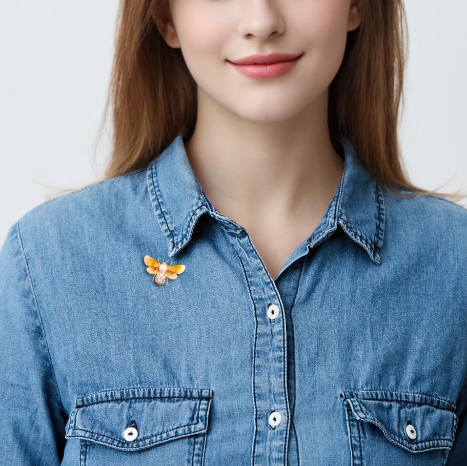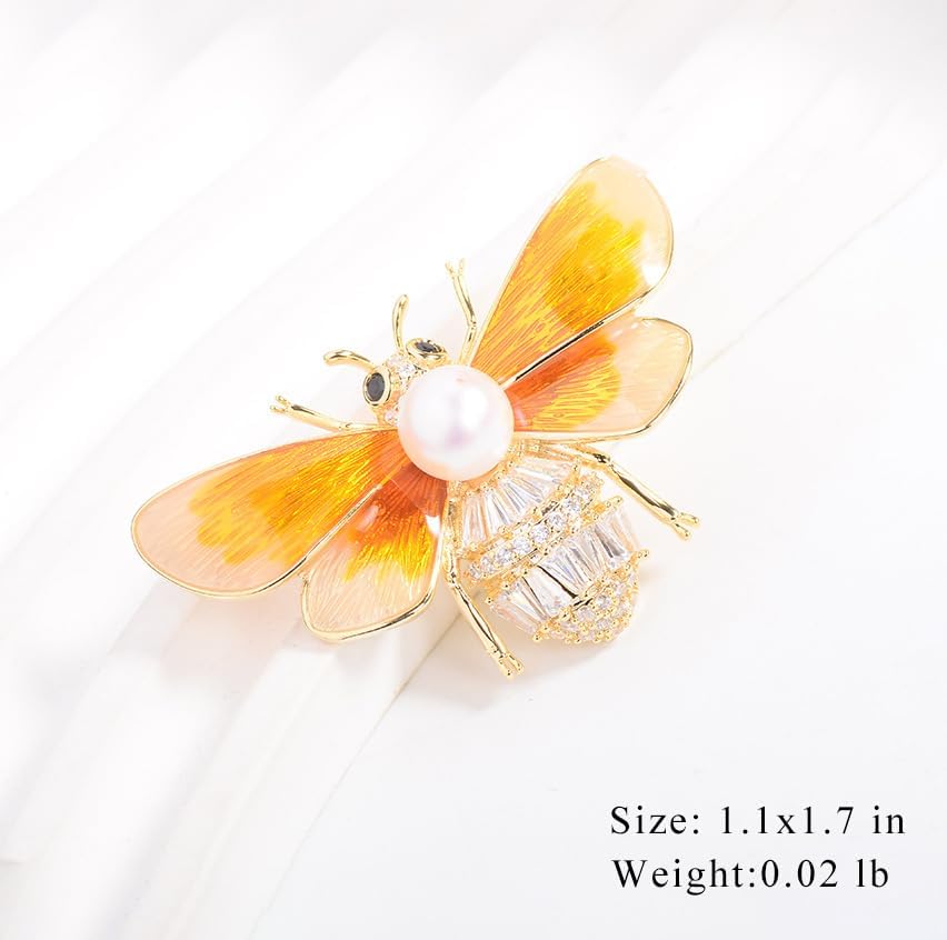 المواد: دبوس النحل مصنوع من النحاس المطلي بالذهب، وخالي من الرصاص، وثلاث طبقات سميكة، ومقاوم للتشوه، وخفيف الوزن للارتداء طوال اليوم. يمكن تثبيتها على طية صدر السترة، أو الفستان، أو الياقة، أو الجيب، أو على قبعة، أو حزام، أو طراز كاجوال أو فستان سهرة.