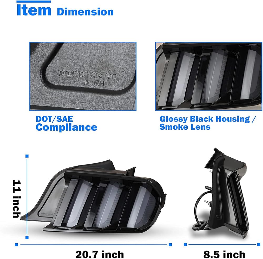 • ✅الملاءمة: هذا المصباح الخلفي LED يناسب 2015-2023 فورد موستانج كوبيه وقابل للتحويل، ويناسب أيضًا 2016-2020 فورد موستانج شيلبي GT350 و2020-2023 فورد موستانج شيلبي GT500، يرجى التأكد من أن سيارتك على قائمة المطابقة لدينا.