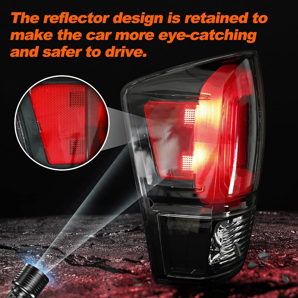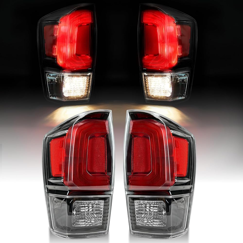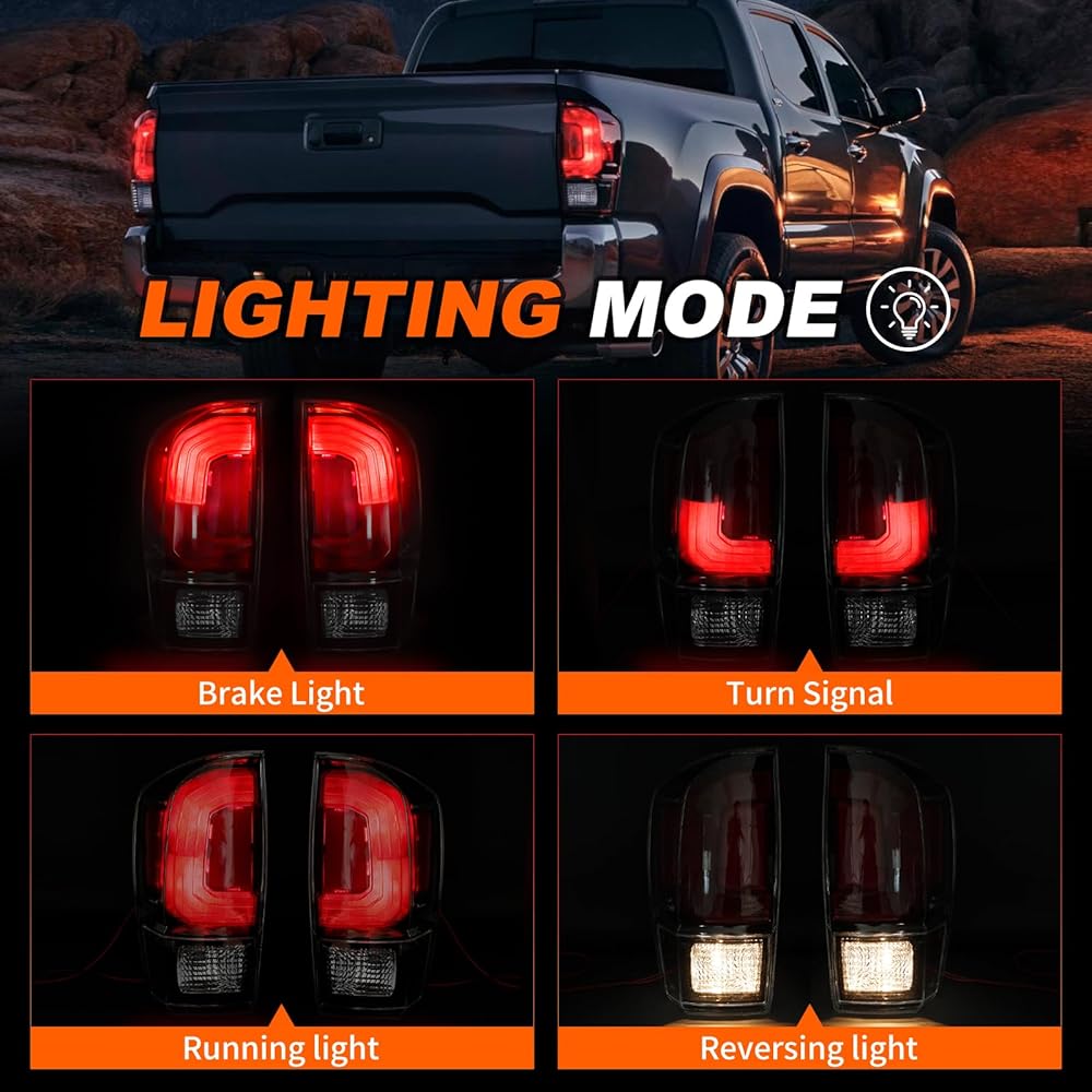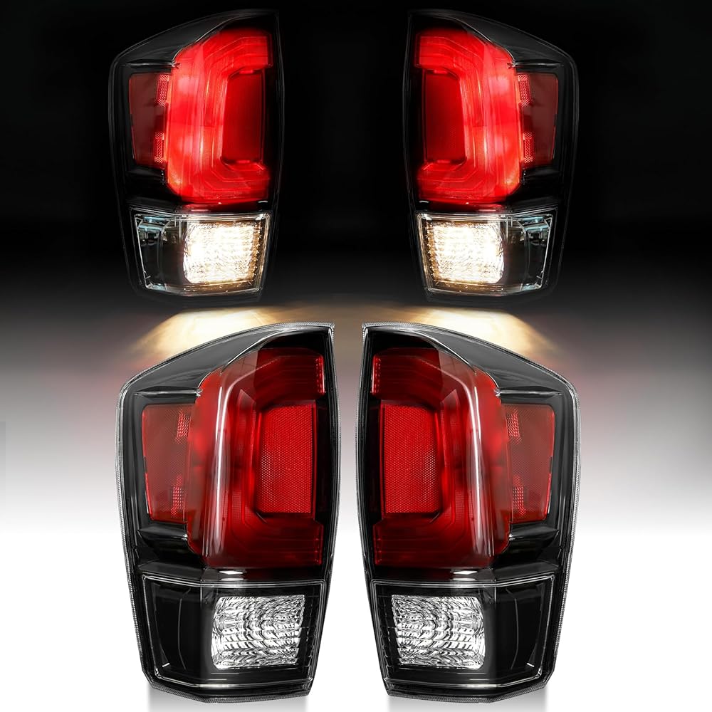 زوج من مصابيح خلفية سوداء من Mayello مع مصابيح مناسبة لشاحنات Toyota Tacoma 2016-2023، استبدال التوصيل والتشغيل