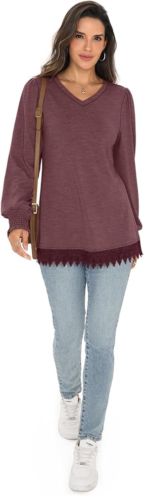 تصميم خاص: تتميز قمصان التونيك النسائية ذات المقاس الفضفاض برقبة على شكل حرف V جذابة، وأكمام منتفخة مرحة مع أطراف أكمام مكشكشة أو مكشكشة، وحاشية جميلة من الدانتيل. تجمع القمصان النسائية الطويلة الكاجوال بين التصميم الأنيق والتفاصيل الجميلة لإطلالة رومانسية ساحرة