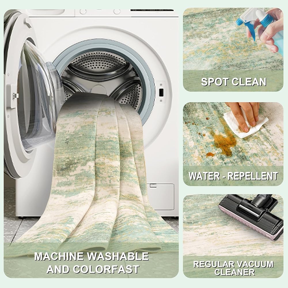 • سجاد قابل للغسل في الغسالة: الحفاظ على سجاد المناطق غير المتساقط هذا أمرًا سهلاً! للصيانة اليومية، اجعل التنظيف المنتظم بالمكنسة الكهربائية جزءًا من روتينك. عندما تكون هناك حاجة إلى تنظيف أعمق، ما عليك سوى وضعها في الغسالة بالماء البارد في دورة لطيفة (لا تضيف مواد مبيضة). مثالية للمناطق ذات حركة المرور العالية.